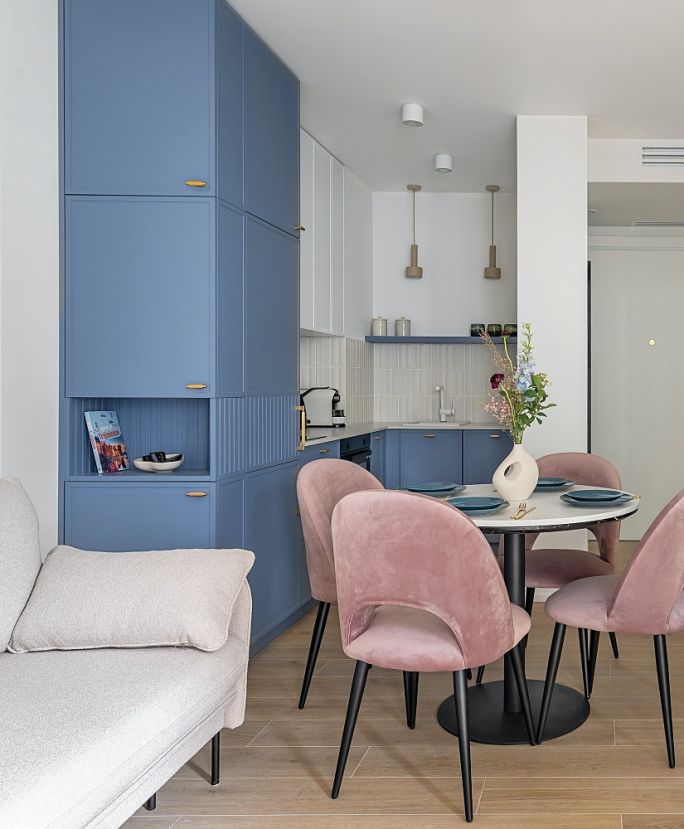 39-metrowa kawalerka z akcentami błękitu – to małe mieszkanie w Sopocie urządzono elegancko i praktycznie