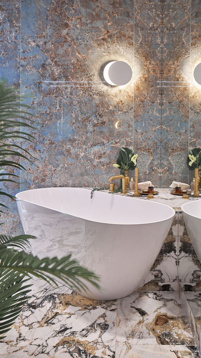 Ekskluzywny look, czyli złoto i gres przypominający marmur