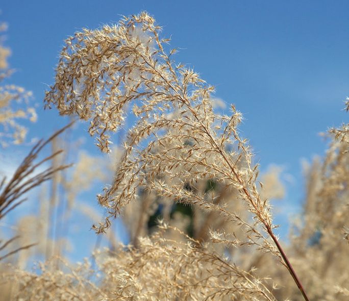 Miskant chiński ‘Gracillimus’ – miskanty to trawy do każdego ogrodu. Rosną bujnie, kwitną obficie i widowiskowo. ‘Gracillimus’ ma wąskie liście i miedziane kwiatostany, które w porównaniu z innymi odmianami tej rośliny rozwijają się dość późno. Przed nadejściem jesiennych deszczy i chłodów źdźbła należy związać w chochoł, aby wilgoć nie dostała się do środka rośliny.
