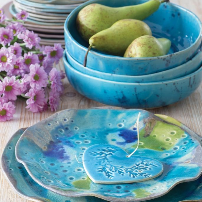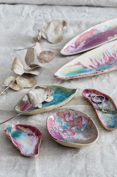 Oprócz spotkań z ludźmi od zawsze inspiracją są woda i ukochane rośliny, które pojawiają się w jej pracach, jeśli nie w kolorach, to w formie. Robi więc półmiski jak piórka, liście, główki kwiatów w rozkwicie, promyki słońca, łódeczki. Za to wciąż nie może znaleźć nazwy dla swojej firmy, choć intensywnie rozmyśla o tym od dłuższego czasu.