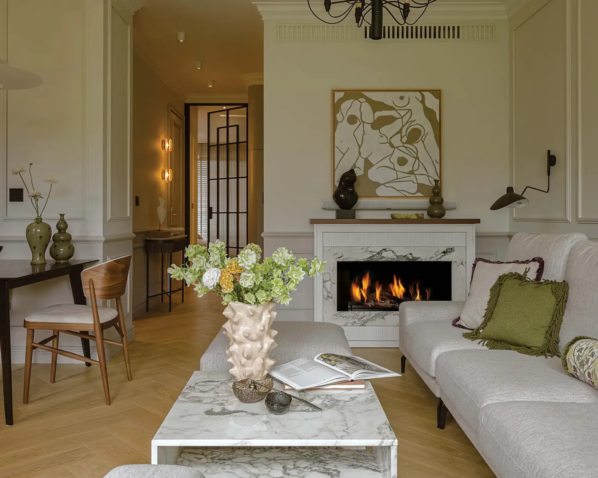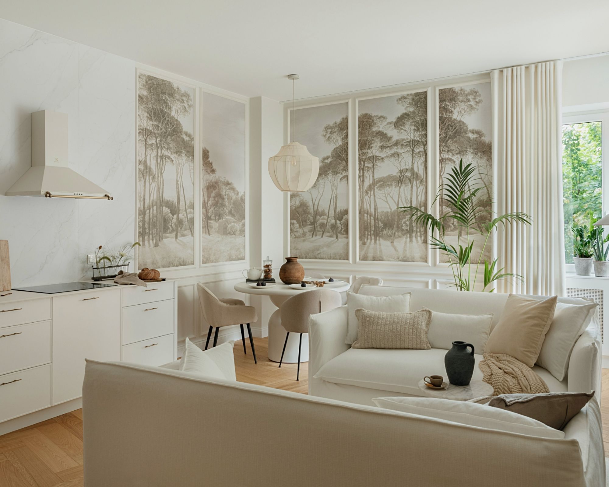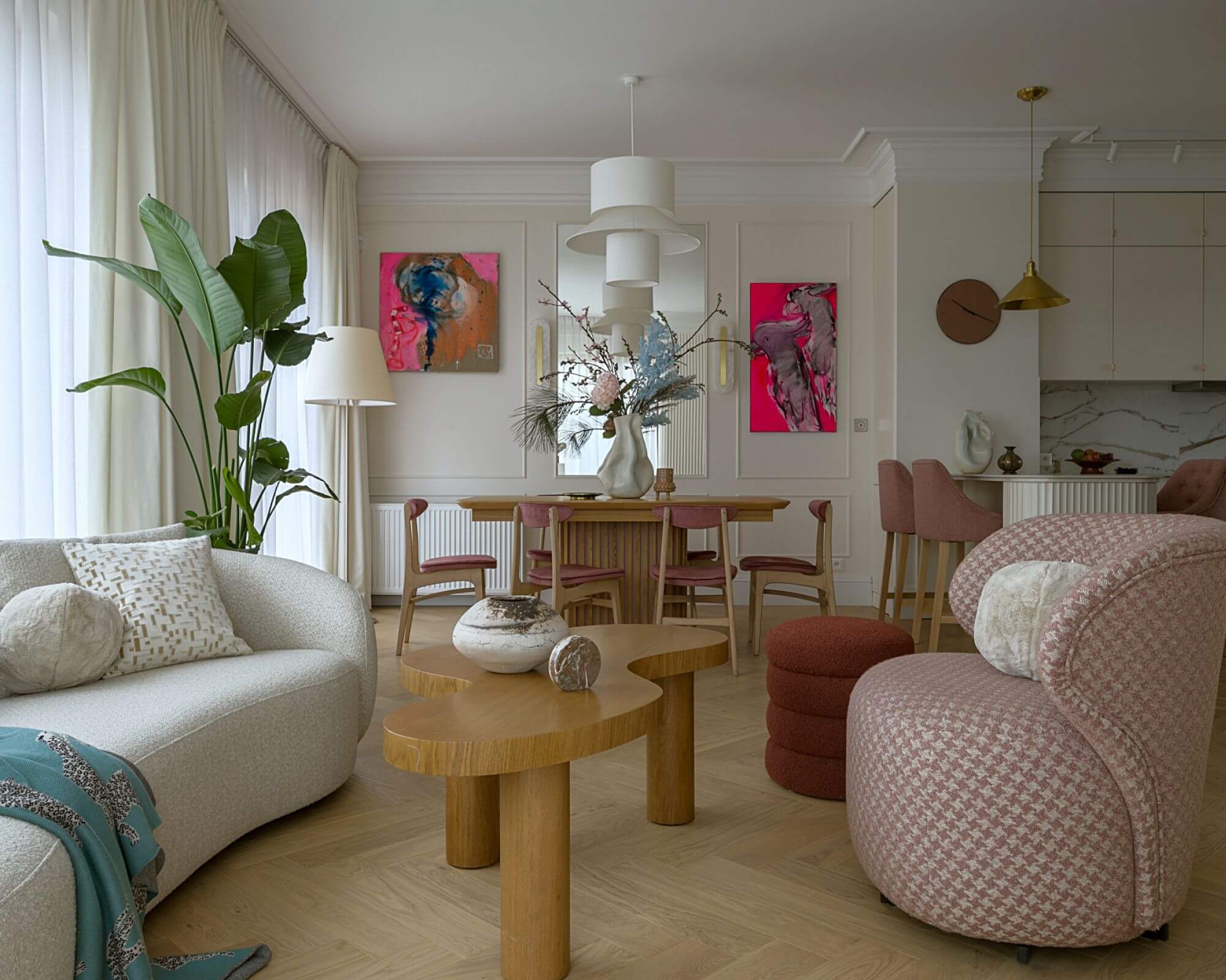 Z połączenia trzech różnych kobiecych temperamentów powstały ciepłe, eleganckie i przytulne wnętrza. Łagodne linie, miękkie kształty i stonowane kolory tworzą tu atmosferę spokoju i odprężenia.