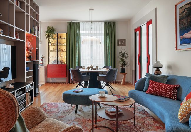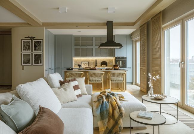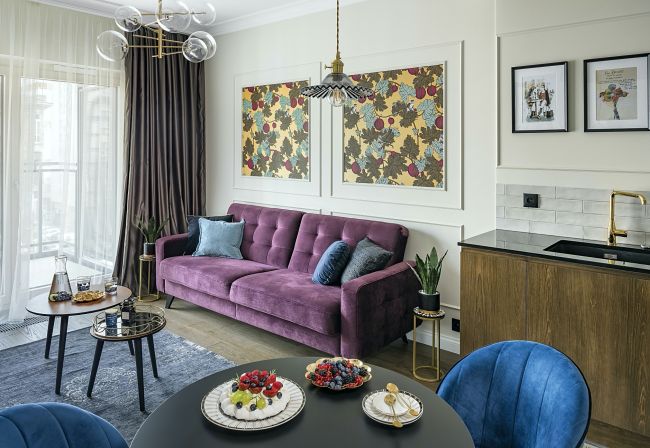 Kaszmirowe mieszkanie z tapetami w oprawie ze sztukaterii. To wnętrze koi zmysły!