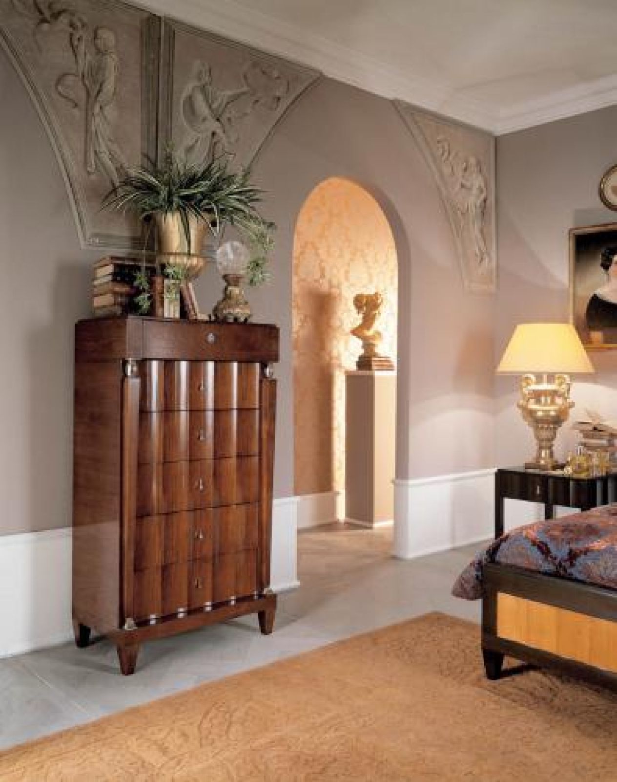 Najpiękniejsze komody to dzieła pochodzące z włoskich rodzinnych manufaktur, gdzie przez lata, z pokolenia na pokolenie przekazuje się tajniki fachu. Tam, spod ręki mistrzów wychodzą komody fornirowane mahoniem albo orzechem (fornirować można na trzy sposoby: w jodełkę, poprzecznie i podłużnie) i intarsjowane wstawkami z jeszcze innego gatunku drewna. Technik zdobniczych jest więcej. Zachwycają na przykład efektowne markieterie, czyli wzory ułożone z drewna, metalu, kości słoniowej, marmuru, ale piękne są też wielobarwne polichromie.