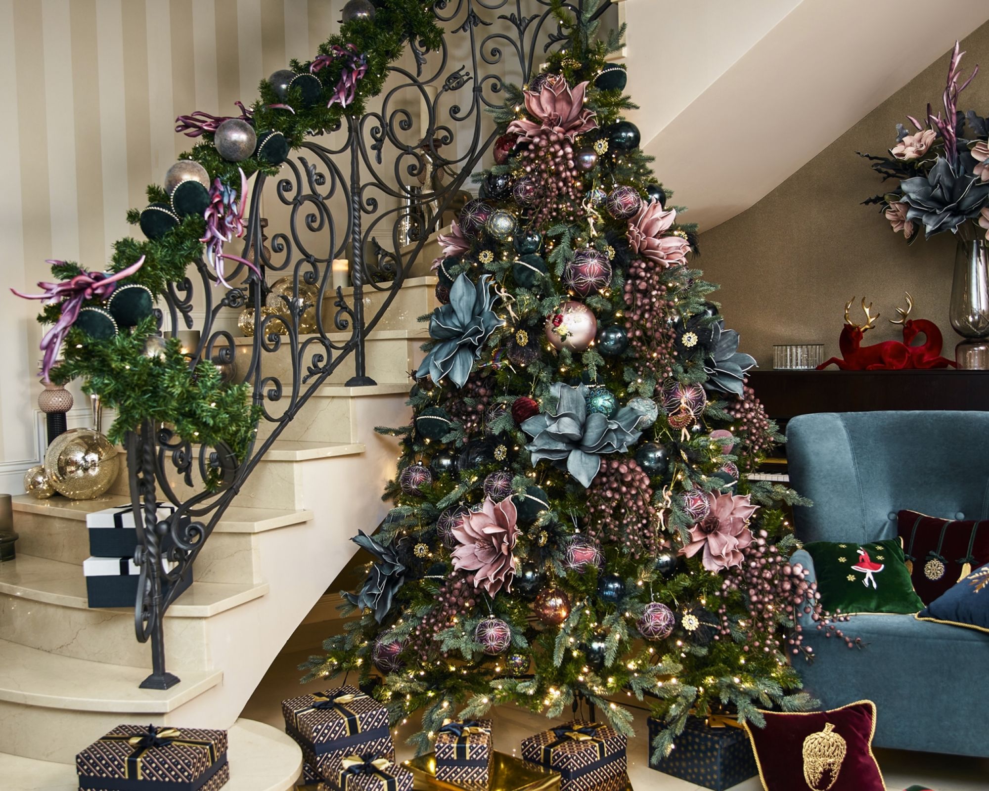 Niebieski i złoty to jeden z najbardziej szykownych duetów, czerń na ścianach prezentuje się niezwykle elegancko, a biel tworzy cudownie przytulny klimat. W takich wnętrzach spędzimy magiczne święta!