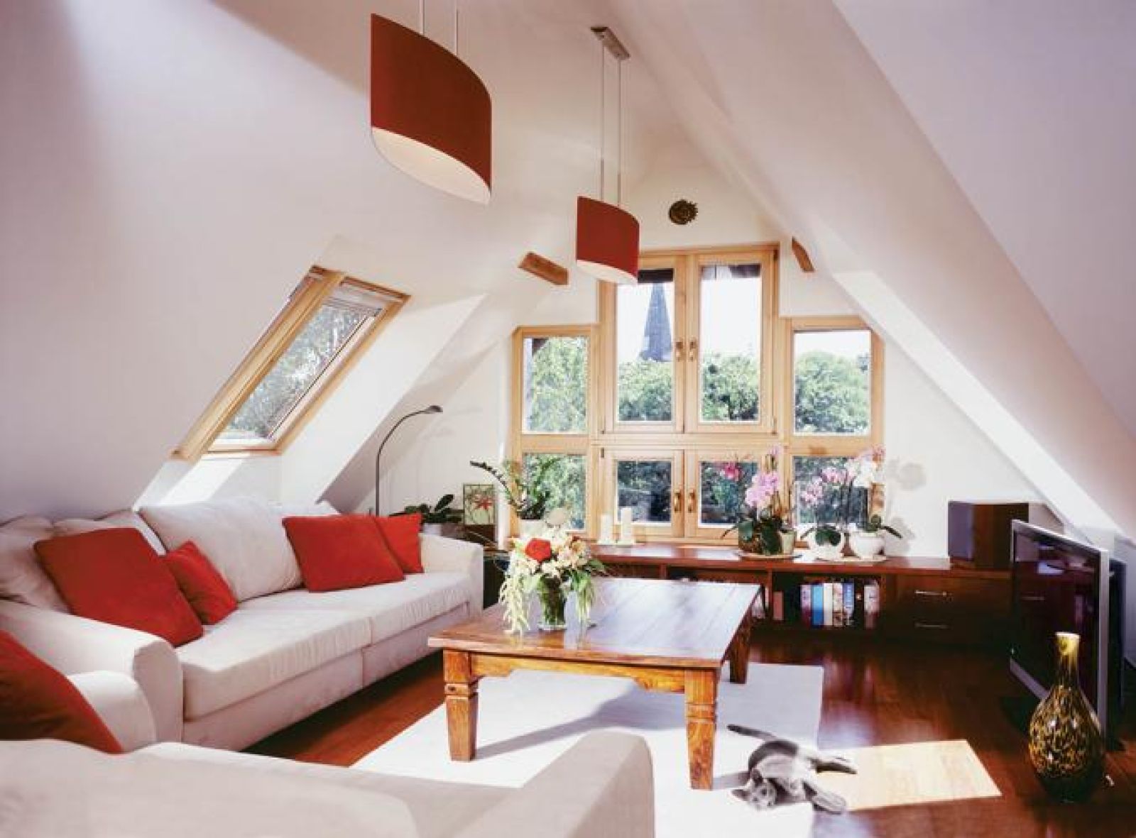 W kuchni wygodne będą niskie i szerokie okna panoramiczne, które rzucą światło na blat. W salonie ciekawie może wyglądać przeszklona ściana jak w projektach Le Corbusiera. Zaskakujący efekt dają też okna wąskie, ale wysokie – rozświetlą część pokoju w głębi, za to boczne ściany pozostaną w półmroku. I jeszcze pomysł dla odważnych – wybierzcie trzy, cztery nieduże okna i rozplanujcie je na ścianie tak, jakbyście wieszali obrazy.