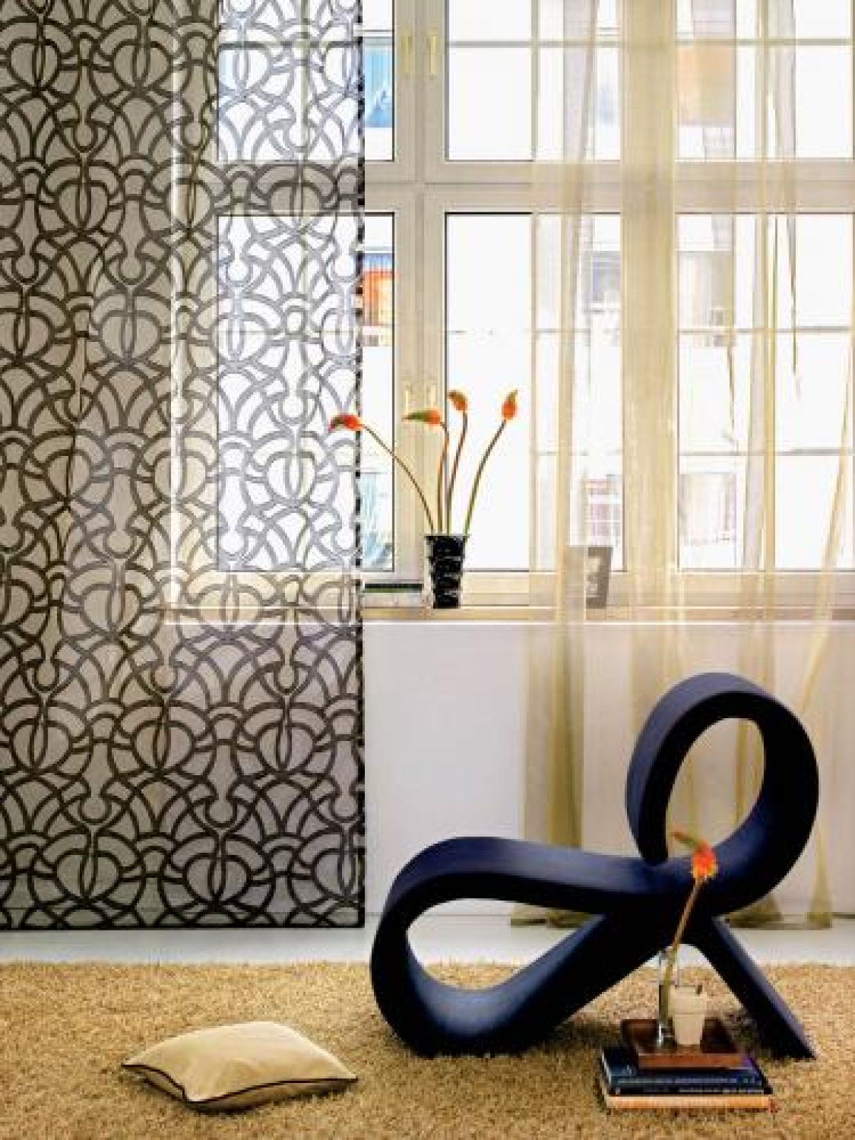 Są też zasady, które pozwolą nam uniknąć błędów. Do salonu, w którym jest mało światła, wybierzmy tkaniny o ciepłej tonacji – złote, żółte, ceglaste. Wzory geometryczne i duże motywy lepiej się prezentują na mało umarszczonej tkaninie. Lekkie materie powiesimy bardziej finezyjnie, ciężkim damy podszewkę i elegancki karnisz. Największy kłopot sprawiają ogromne przeszklone ściany. Nie należy ich całkowicie zasłaniać. Dobre więc będą drewniane żaluzje czy ekrany japońskie.