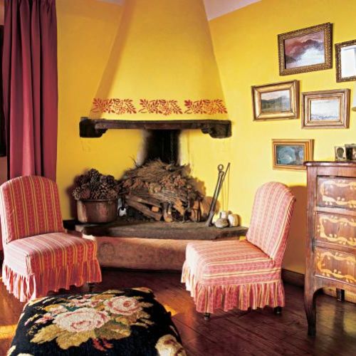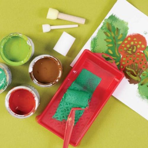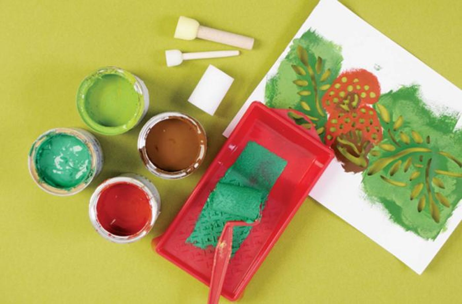 Pracę zaczynamy od zaplanowania, gdzie umieścimy fresk. Zaznaczamy jego linię taśmą malarską. Przykładamy szablon i malujemy elementy w jednym kolorze. Kiedy wyschną, w kolejnym.![]()