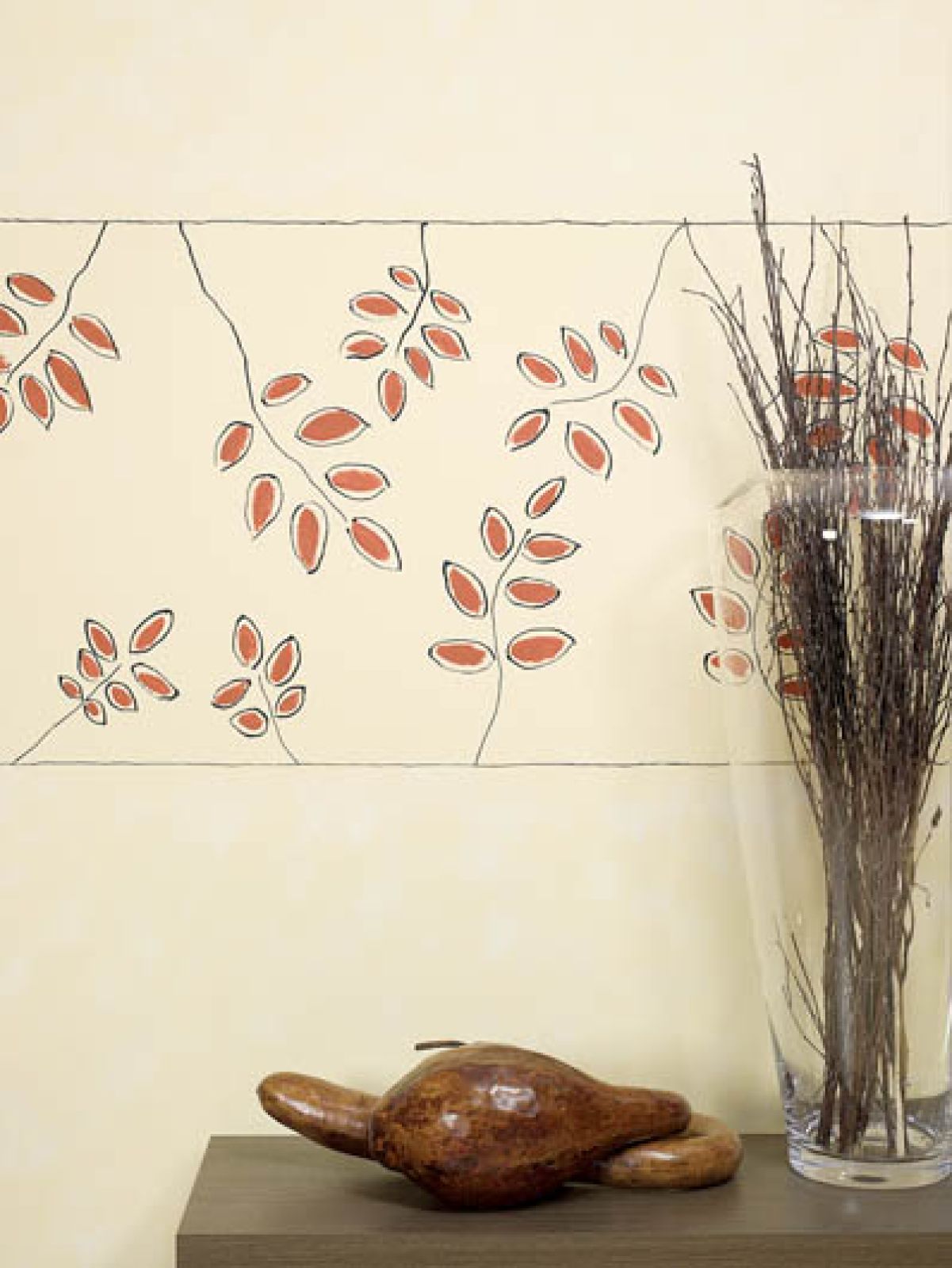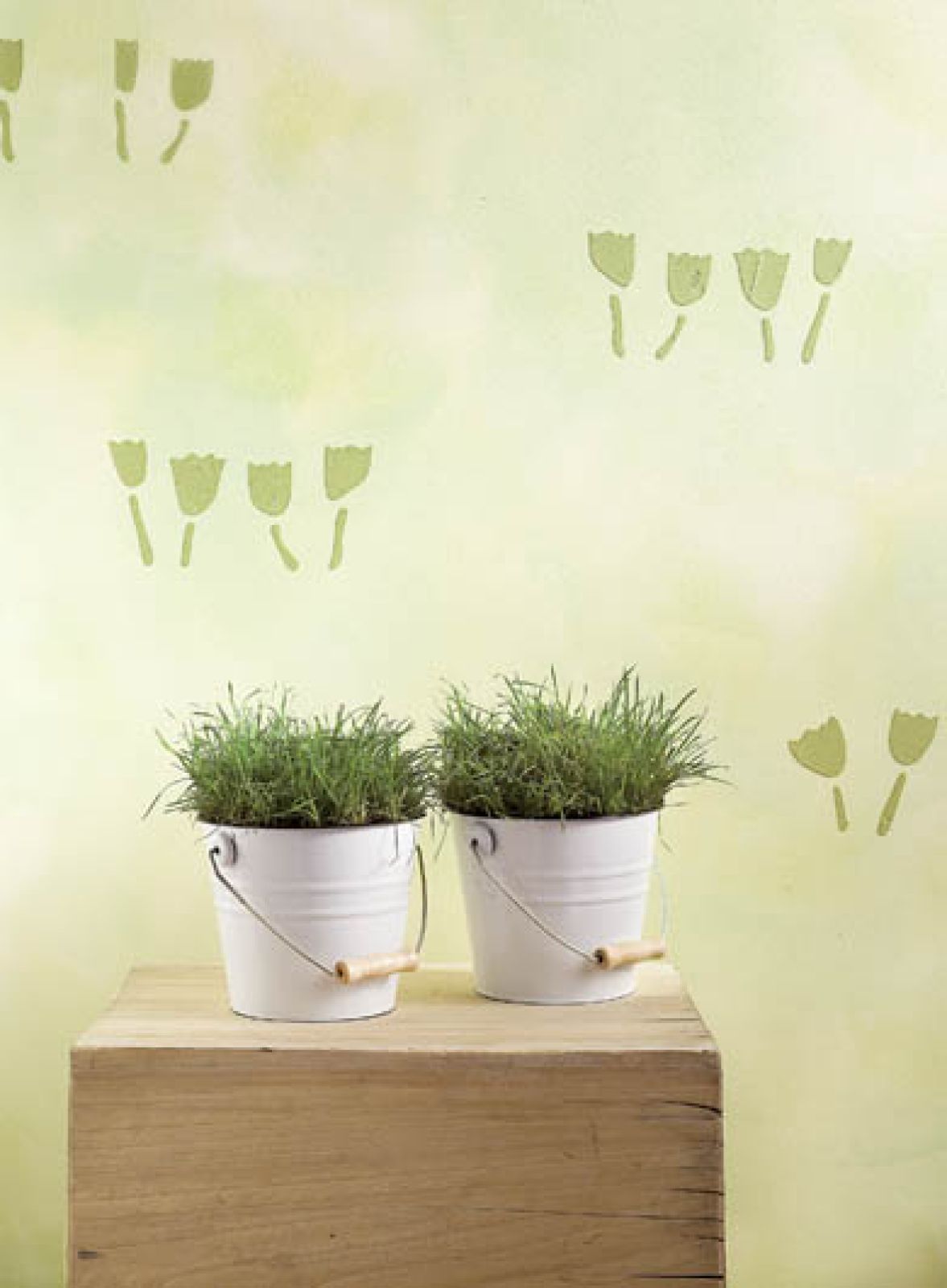 Ciekawie wyglądają ściany ozdobione za pomocą szablonów, co wcale nie jest trudne. Propozycje wzorów znajdziemy w każdej „Werandzie”, a jeśli mamy smykałkę artystyczną, ornament zaprojektujemy sami (w dowolnym graficznym programie) i damy do wycięcia na ploterze. Potrzebne są jeszcze farby, najlepiej gęste jak śmietana albo o konsystencji żelu. Doskonałym rozwiązaniem okazują się farby w sztyfcie – nie podciekają, są ekonomiczne (zamiast ogromnej puszki kupimy jedną pałeczkę, tym bardziej gdy potrzebujemy namalować raptem kilka detali), mieszamy je bezpośrednio na ścianie i nie mamy bałaganu w domu.