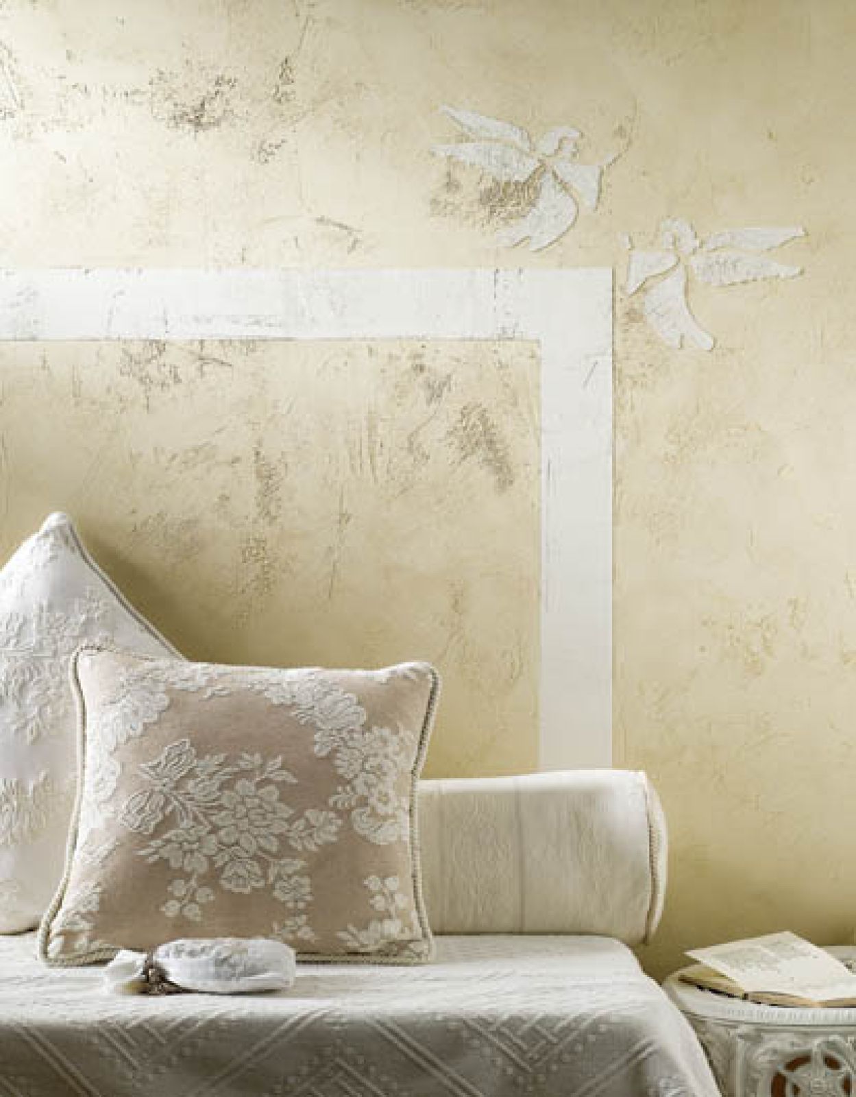 Warto pomyśleć o wzmocnieniu efektu i zabawie pigmentami dekoracyjnymi. – Perłowa Poświata jest idealna do szablonów – poleca oryginalny produkt marki Dekoral Aneta Jarosz-Pałach z PPG Deco Polska. – Pomalowana ściana wygląda, jakby była obsypana srebrnym pudrem, rozświetlona. Najlepiej wygląda na złamanej bieli, jasnych beżach i różach. A jeśli chcemy mieć słoneczny blask, wybierzmy pigment Iskrzące Złoto. Pasuje do bieli, ale też zieleni, czerwieni i brązu.