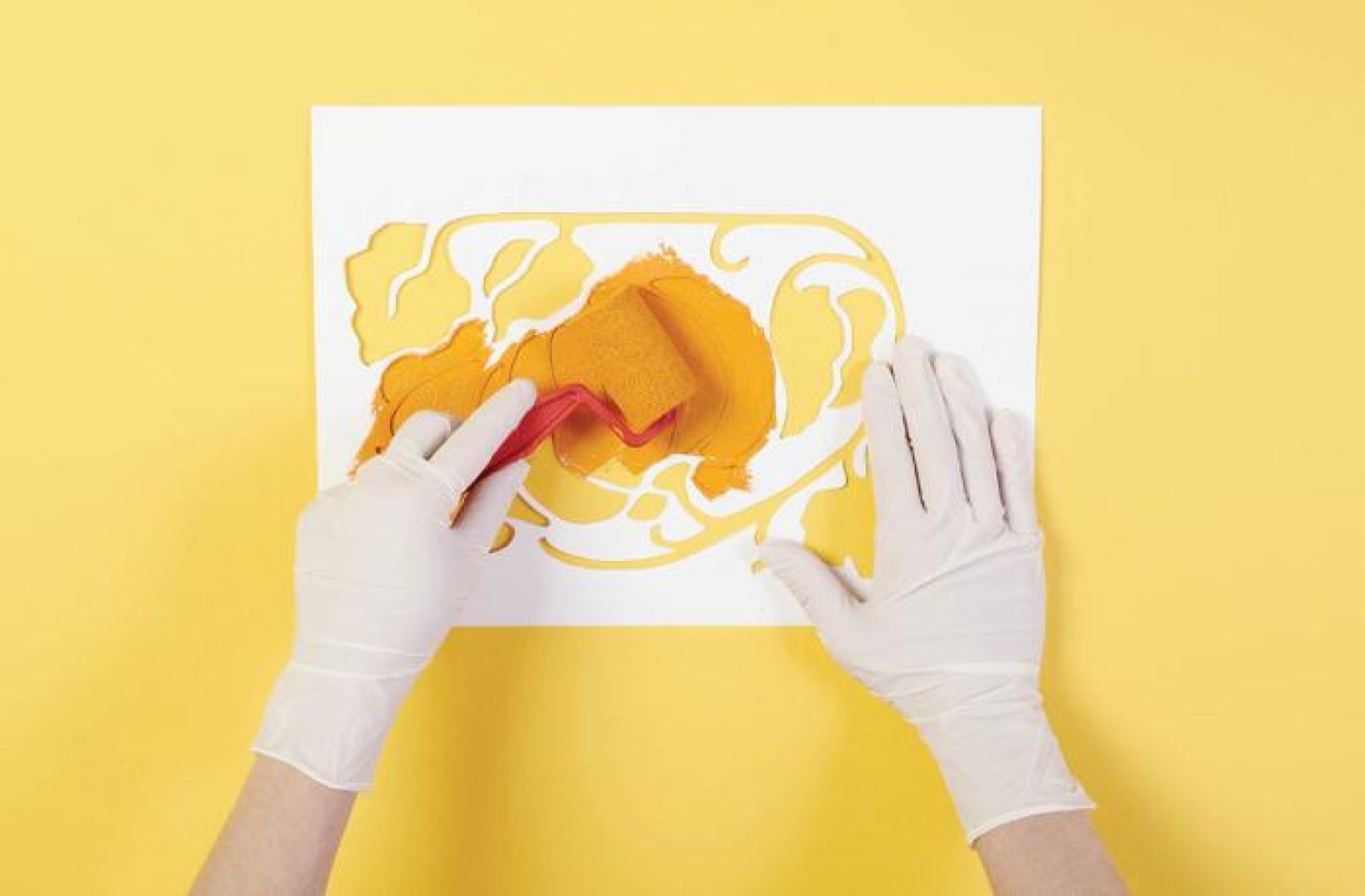 Jeśli zamierzasz namalować ornament kilka razy, lepiej będzie zrobić szablon, który nie nasiąknie farbą. Doskonale nada się do tego folia z plastikowej teczki albo niepotrzebne zdjęcie rentgenowskie.