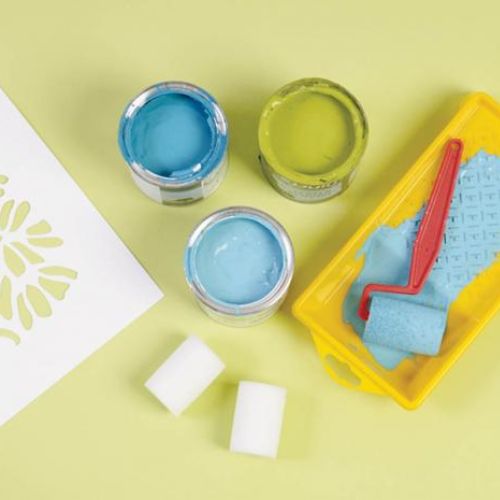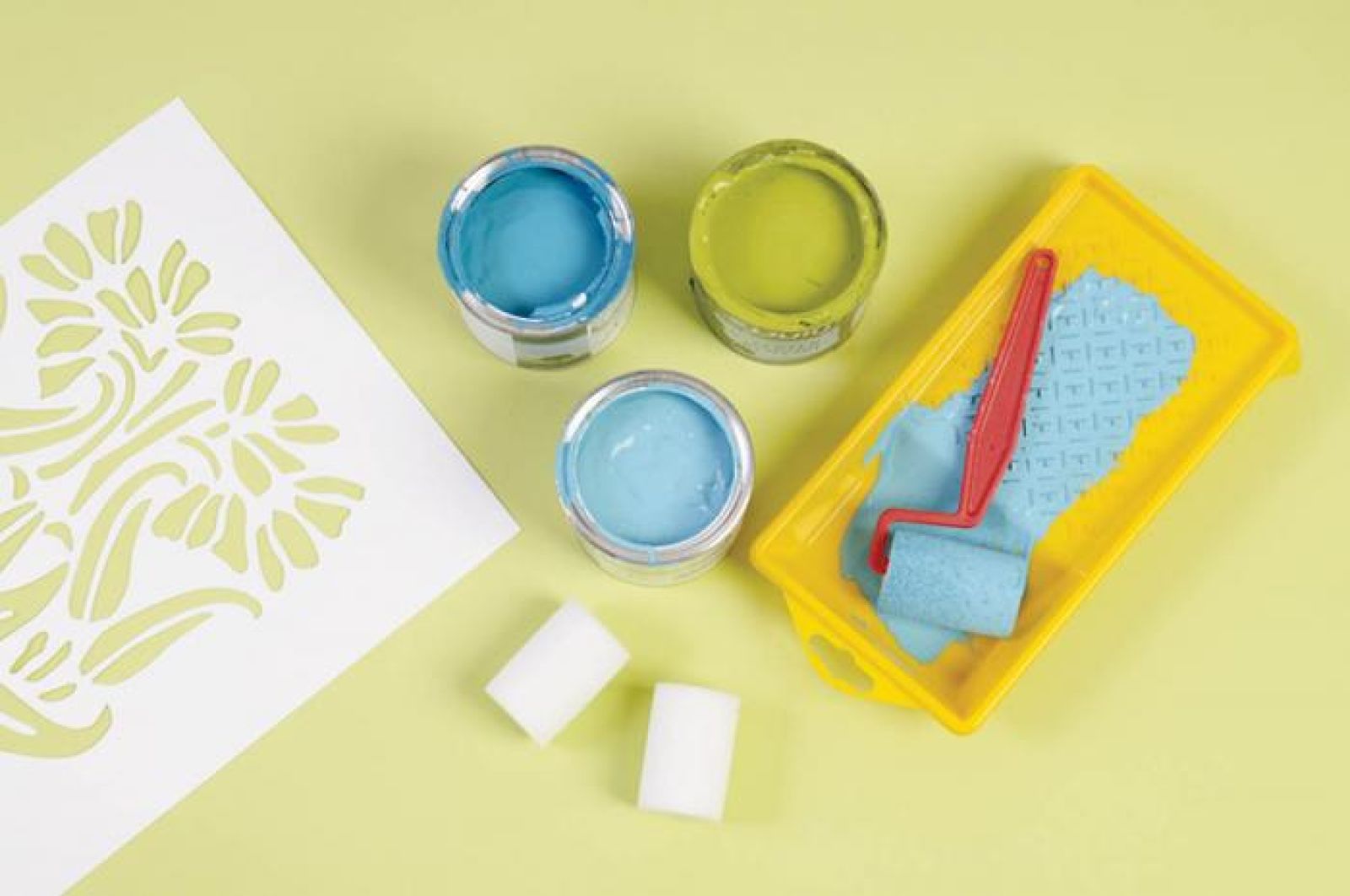 Praca jest prosta. Najpierw planujemy, w którym miejscu umieścimy deseń. Przykładamy szablon i malujemy niebieską część wzoru. Kiedy kwiaty wyschną, wypełniamy gałązki. Ciemniejszym odcieniem niebieskiego robimy cienie na płatkach.