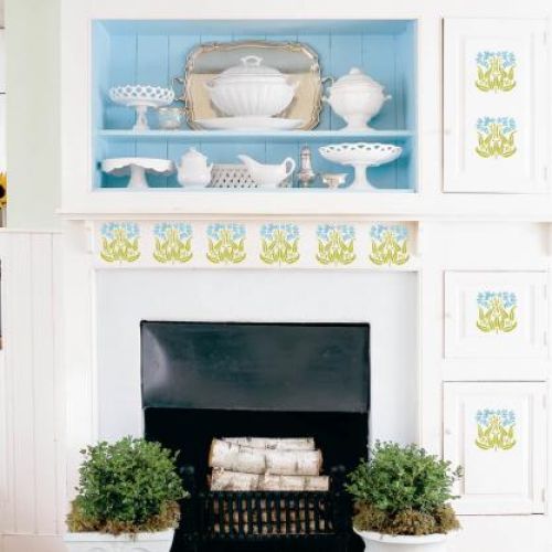 My pomalowaliśmy ścianę kominkową w wiejskim domu i filary w klasycznej rezydencji. Kwiaty ładnie podkreśliły detale architektoniczne w obu, tak różnych wnętrzach: półkę nad paleniskiem, rząd szafek i bogatą sztukaterię. Ten zdyscyplinowany, niewinny motyw zaprowadził porządek. Zachęcamy państwa do eksperymentowania. Ciekawi jesteśmy, jak sprawdzi się w góralskim domu albo minimalistycznym apartamencie?