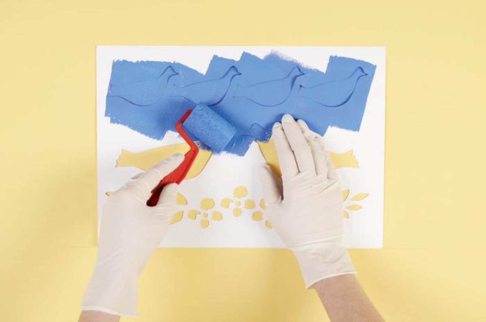 Jeśli zamierzasz namalować ornament kilka razy, lepiej będzie zrobić szablon, który nie nasiąknie farbą. Doskonale nada się do tego folia z plastikowej teczki albo niepotrzebne zdjęcie rentgenowskie