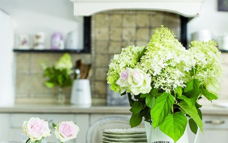 Pudrowe barwy przywieźliśmy z azjatyckich wypraw. „Rozlane” na tkaninach, porcelanie, obrazach, abażurach są jak wspomnienia. Do tego kropla pozłoty tu i tam, świeże kwiaty i już pachnący kanikułą klimat unosi się w powietrzu.
