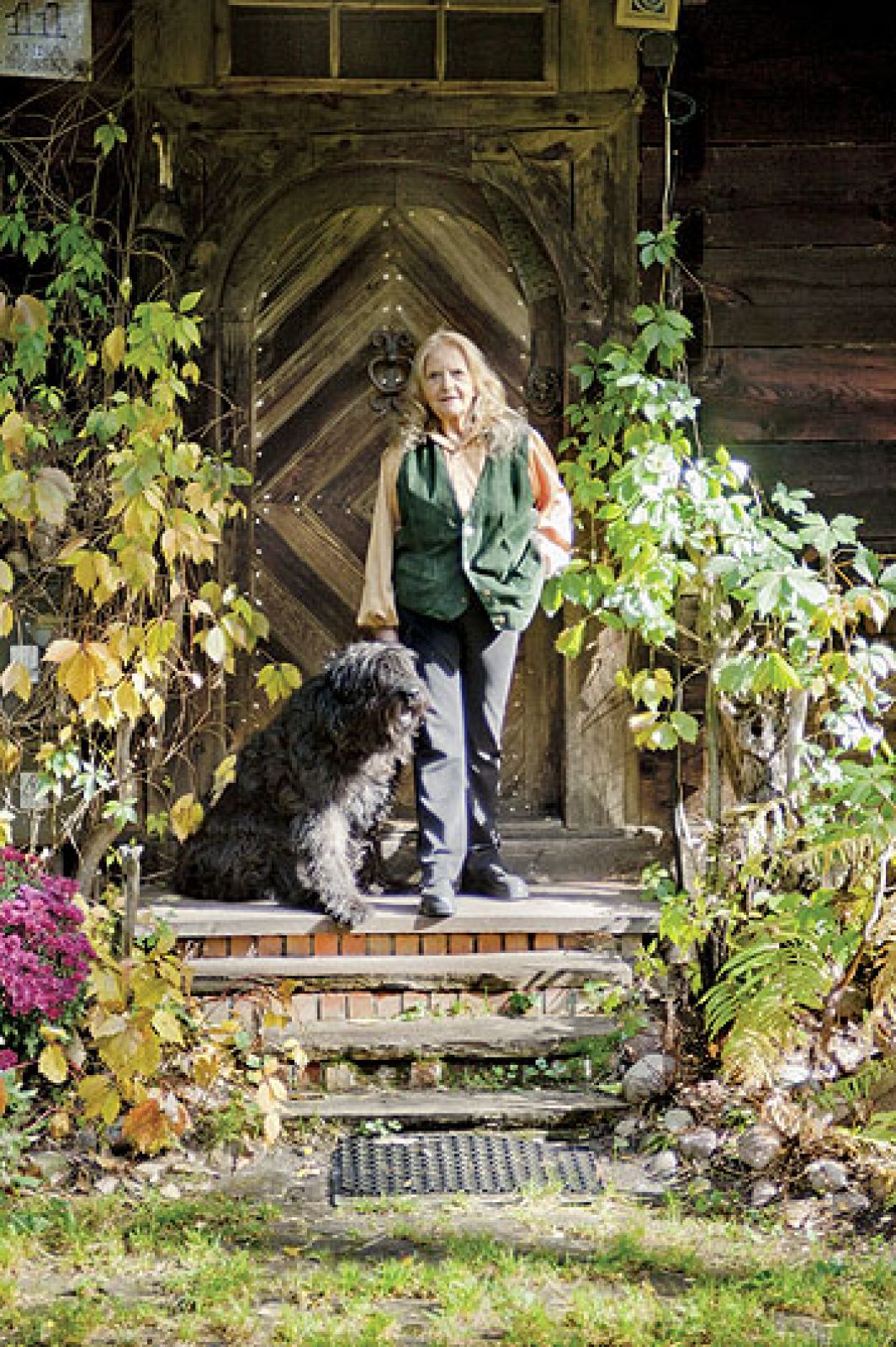 To leśny dom ściągnął rzeźbiarkę z powrotem do Polski. – Śniłam o nim, zdawało mi się, że stoi taki opuszczony – wspomina artystka. Gdy przyjechała do kraju na początku lat 90., zdała sobie sprawę, jak bardzo za tym miejscem tęskniła. Postanowiła zostać. Mieszka więc teraz w lesie, blisko natury. Towarzyszy jej stado zwierząt. Na wybiegu pasą się dwa konie – Samson i Dudek. Po podwórku biega Tomiś – sznaucer olbrzym. Jest przyjazny, ale gdy razem wędrujemy po obejściu, pies idzie równo między mną a rzeźbiarką. – Tak, tak, zasłaniasz mnie i bronisz – poklepuje go po grzbiecie pani Anna. Jest jeszcze kundelek Asik, no i kogut. Dorodne i wiekowe ptaszysko. Dostała go w prezencie od zaprzyjaźnionego malarza, któremu służył za modela. Kogut nie trafił do garnka, lecz na podwórko. To jego królestwo, więc gdy na ławkach na werandzie rozsiadają się goście, ptak jak gdyby nigdy nic przepycha się między nimi i też siada przy stole.