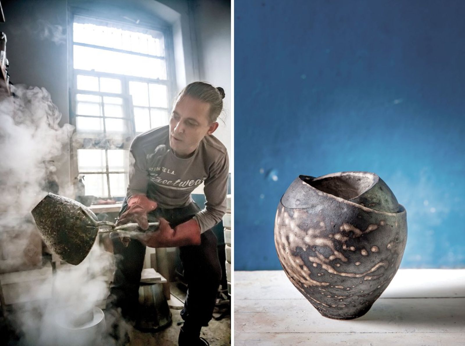 Choć zdobył uznanie, to postanowił jednak skończyć szkołę. Zapisał się na projektowanie ceramiki we Wrocławskiej Akademii Sztuk Pięknych. – Matko, Rytis, nie jesteś już młodzieniaszkiem, ale ładnie wyglądasz i dobrze się rozwijasz – chwalił profesor studenta z czterdziestką na karku. Teraz jest asystentem profesora Przemysława Lasaka i na uczelni pokazuje prastare metody wypału. Na przykład rougo używane przez Bałtów. Naczynia wypala się w ogniu, a potem wyciąga szczypcami, a mają pewnie z 900 stopni, i zanurza się w zakwasie. Po chwili pojawiają się na nich rysunki. Dymu jest mnóstwo, a zapach jak w piekarni. Wygląda to tak, jakby Rytis tańczył jakiś prastary taniec.