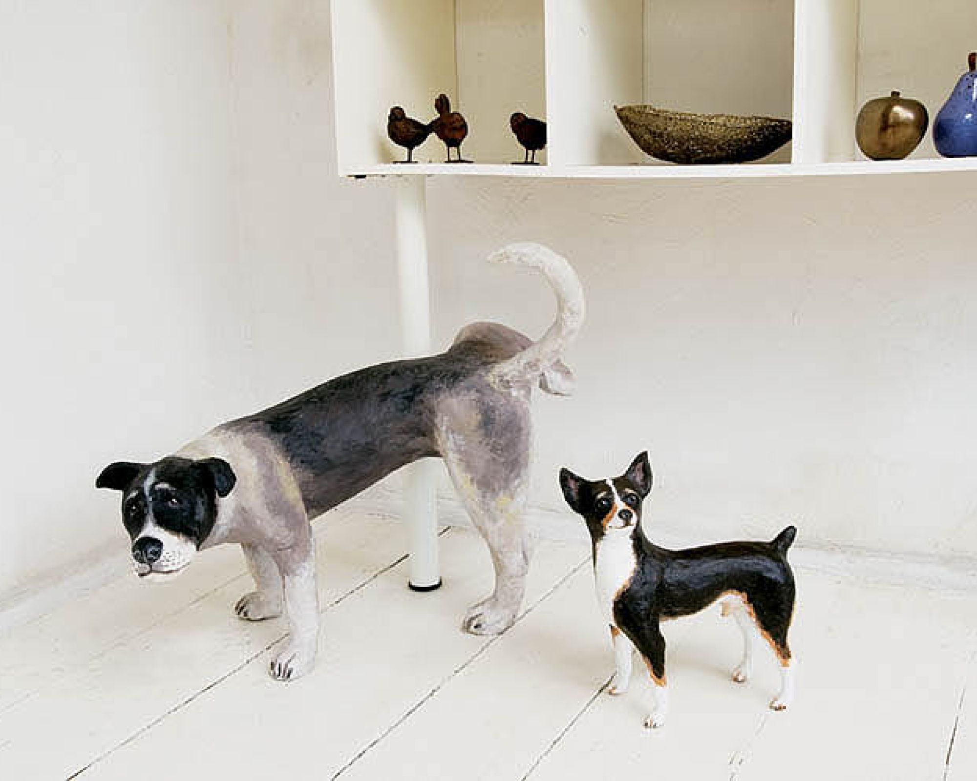 Modernistyczny dom z dekoracjami z faszyny. W ogrodzie plastikowy biały koń. Na ścianach wielkie płótna. I już nie ma wątpliwości – tutaj mieszka artysta. Ten dom miał być przede wszystkim pracownią, o wygodzie nikt nie myślał. A miejsce na atelier wydawało się wymarzone: pięć hektarów działki (po osuszonym sto lat temu stawie) ze starym młynem, malowniczo położone w widłach dwóch rzeczek, niedaleko wysokiego brzegu Wisły. Do stołu zasiedli Michał Zaborowsk