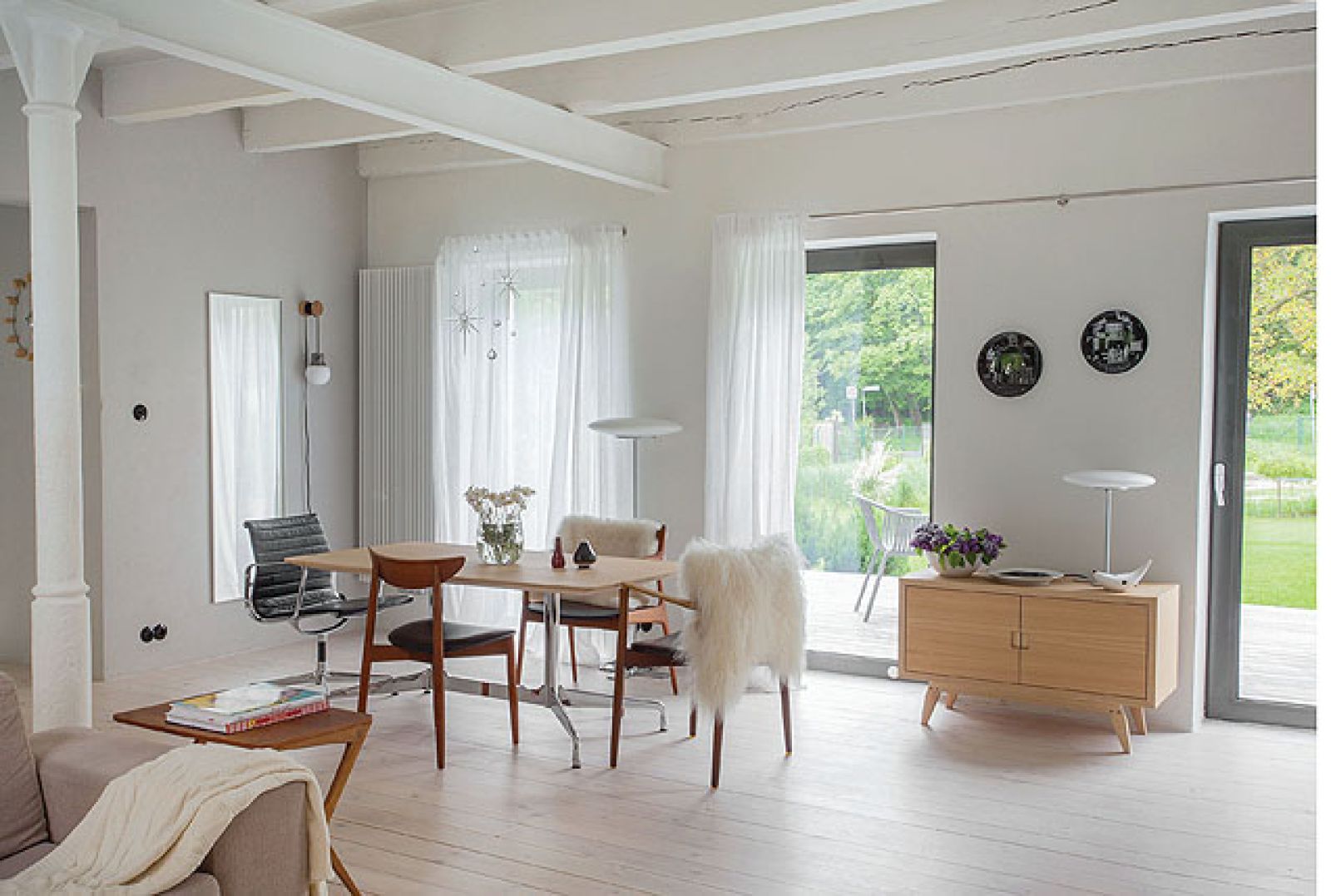 – Bardzo lubię jasne przestrzenie i materiały – mówi Jacek. – Jednak nie jest to czysta biel, często ma domieszkę różnych odcieni szarości. Mimo to dom nie przypomina pałacu Królowej Śniegu. Dzięki meblom. Duńskie wzornictwo podbiło serce projektanta wiele lat temu. Na szczęście ze szczecińskiego Osowa blisko na prawdziwe skandynawskie zakupy. Jacek z rodziną najchętniej robią je w Kopenhadze.