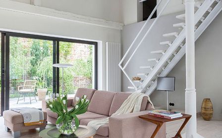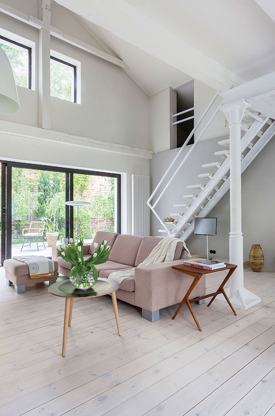– Bez ogródek mówili, że to szalony pomysł – wspomina. – Budynki rzeczywiście były w ruinie, gdzieniegdzie, na przykład w miejscu, gdzie urządziliśmy kuchnię, zamiast podłóg było klepisko. Ale remont przebiegał zadziwiająco sprawnie, choć trzeba było sporo wyburzyć. Na początek usunięto kilka ścian, a wtedy otworzyła się 140-metrowa przestrzeń. Gdy zdjęto strop nad częścią pomieszczeń, doszła też wysokość: sześć metrów w salonie, a siedem w kuchni. – To dlatego, choć dom nie jest olbrzymem, wydaje się taki jasny i pełen powietrza – mówi właściciel. – Od początku wiedziałem, że tak będzie, dlatego postanowiłem o tę przestrzeń zawalczyć.