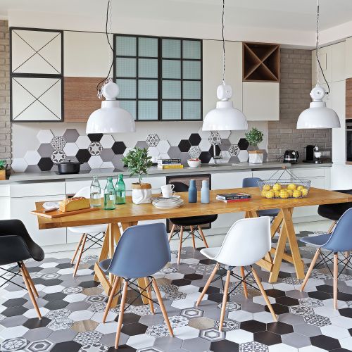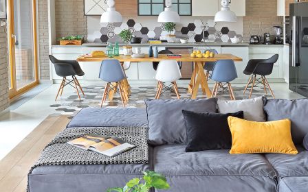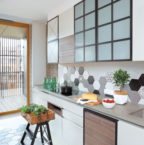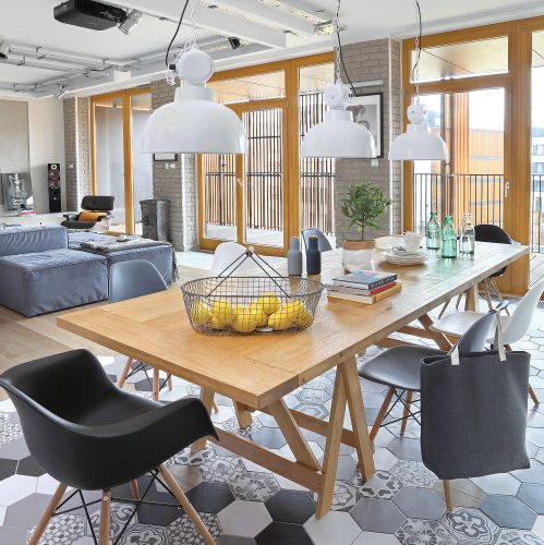 Poprzednio rodzina mieszkała w beżach i brązach, więc teraz zapragnęła odmiany. W mieszkaniu dominują szarość i biel. Ciekawie wygląda podłoga łącząca drewno, płytki ceramiczne i żywicę. - Bardzo graficzna, ale nie do końca praktyczna, szczególnie jeśli ma się dwie córki i Tysię – mówi Marta. Aby skutecznie likwidować ślady kocich łap, próbowali już przeróżnych sposobów. – Teraz mamy odkurzacz, co sam odkurza, ale już ledwo zipie – śmieje się.
