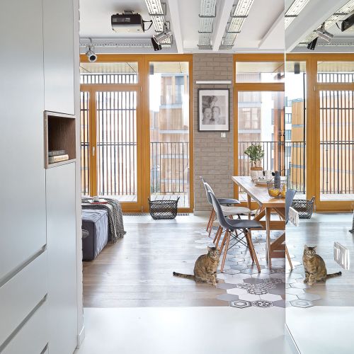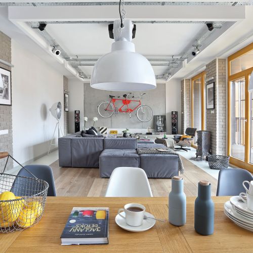 To mieszkanie kręci się wokół dwóch kółek. Jego właściciele, Marta i Paweł, kochają motocykle i rowery. Podobnie architekci; Paweł Ziomka ma vespę, a Julia Balsewicz holenderkę. Panowie od remontu jeżdżą na maszynach sportowych, stolarze – na turystycznych. A wszyscy spotkali się w salonie Moto Szklarnia, który należy do Marty i jej męża. Coś w tym jest, że jeśli ludzie mają wspólną pasję, to łatwiej im razem coś zrobić, na przykład urządzić mieszkanie.