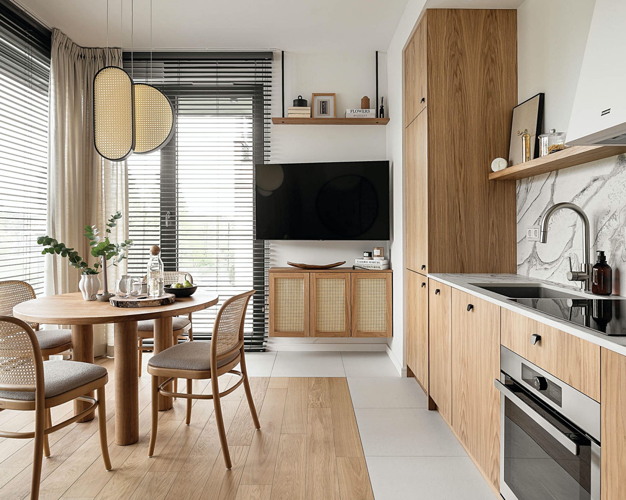 Sprytnie i funkcjonalnie zaprojektowane 48-metrowe mieszkanie – z otwartą przestrzenią, meblami na wymiar i modnymi łukami