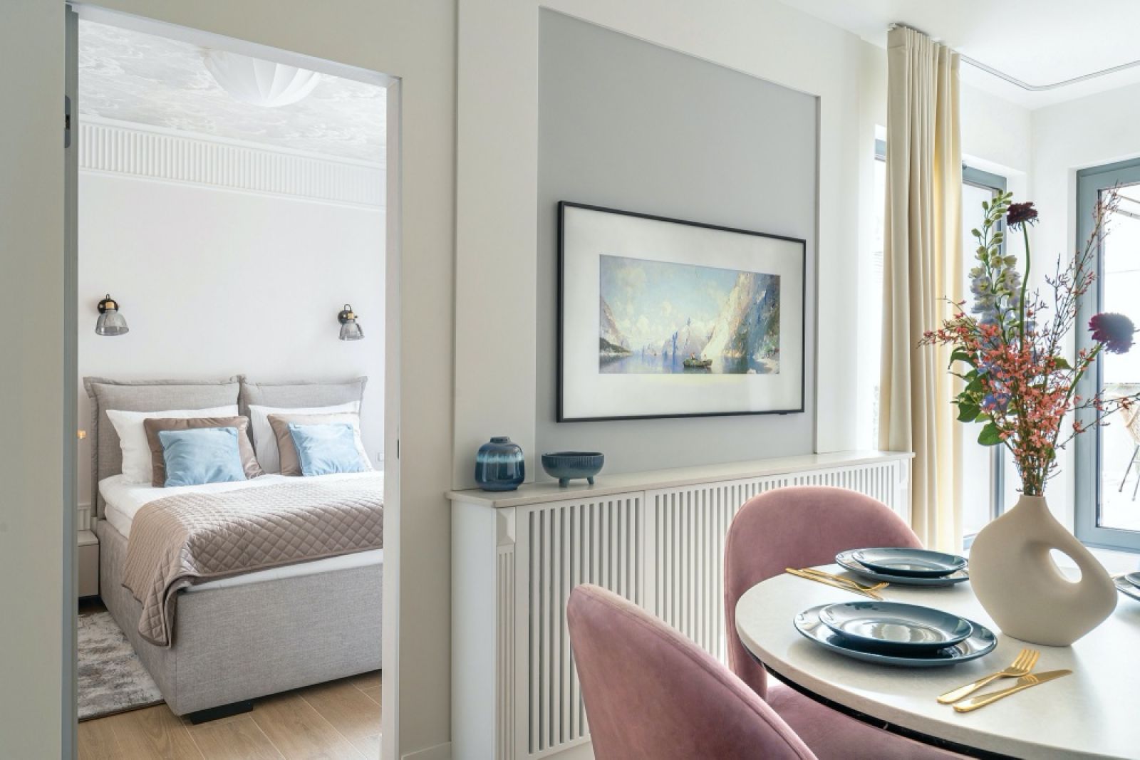 39-metrowa kawalerka z akcentami błękitu – to małe mieszkanie w Sopocie urządzono elegancko i praktycznie