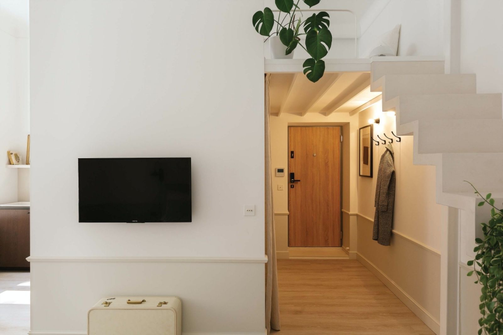3. Otwarta sypialnia i telewizor wiszący na ścianie