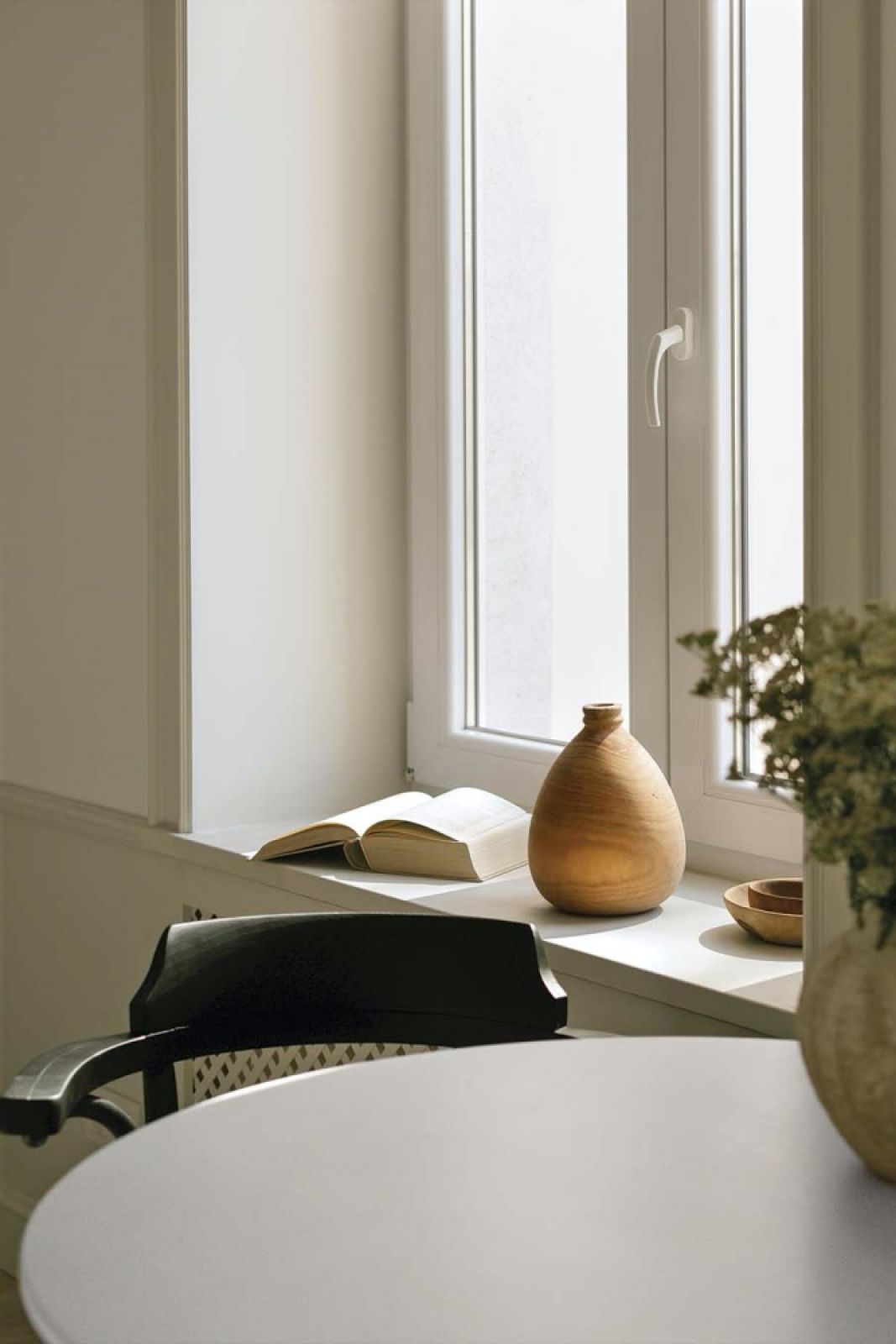 Pod szerokimi parapetami, charakterystycznymi dla kamienic, znajdują się zwyczajne grzejniki. Architektka postanowiła je ukryć za dekoracyjną drewnianą kratką – to pomysł zaczerpnięty z angielskich domów, a przy okazji bardzo ekonomiczne rozwiązanie, które pozwoliło uniknąć kosztów wymiany kaloryferów na designerskie i pasujące do nowego wnętrza.