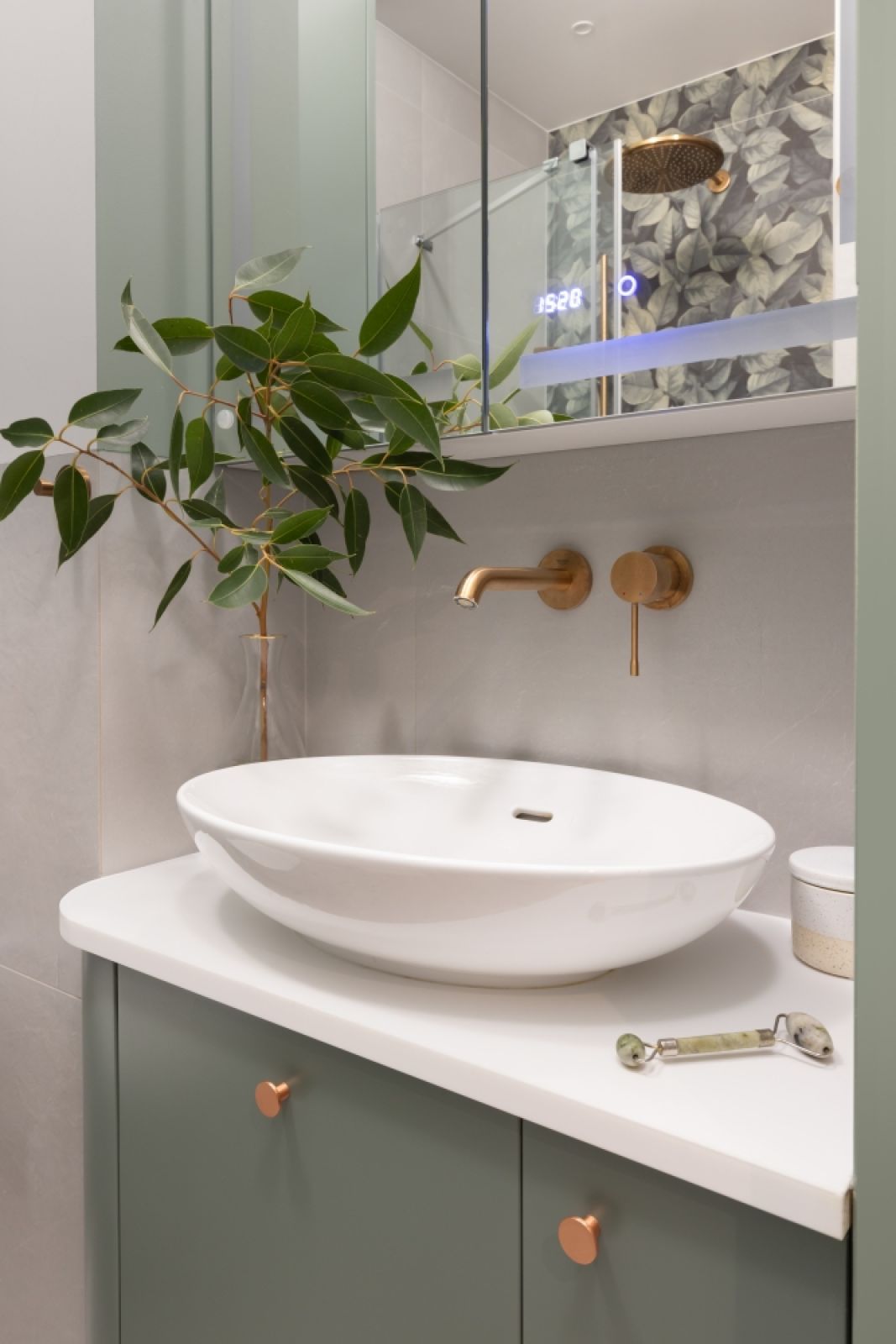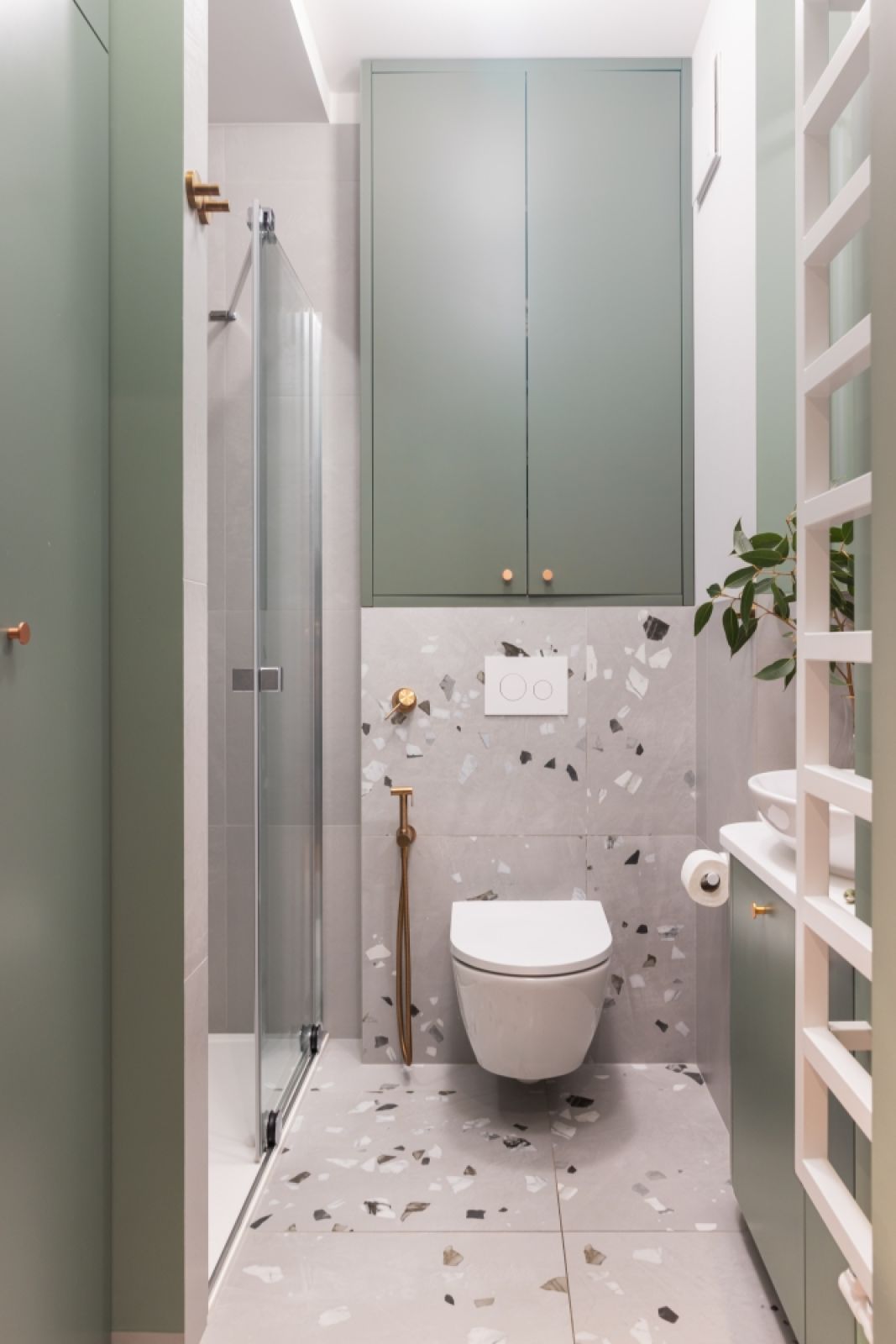 2. Łazienka w zieleni z akcentami miedzi