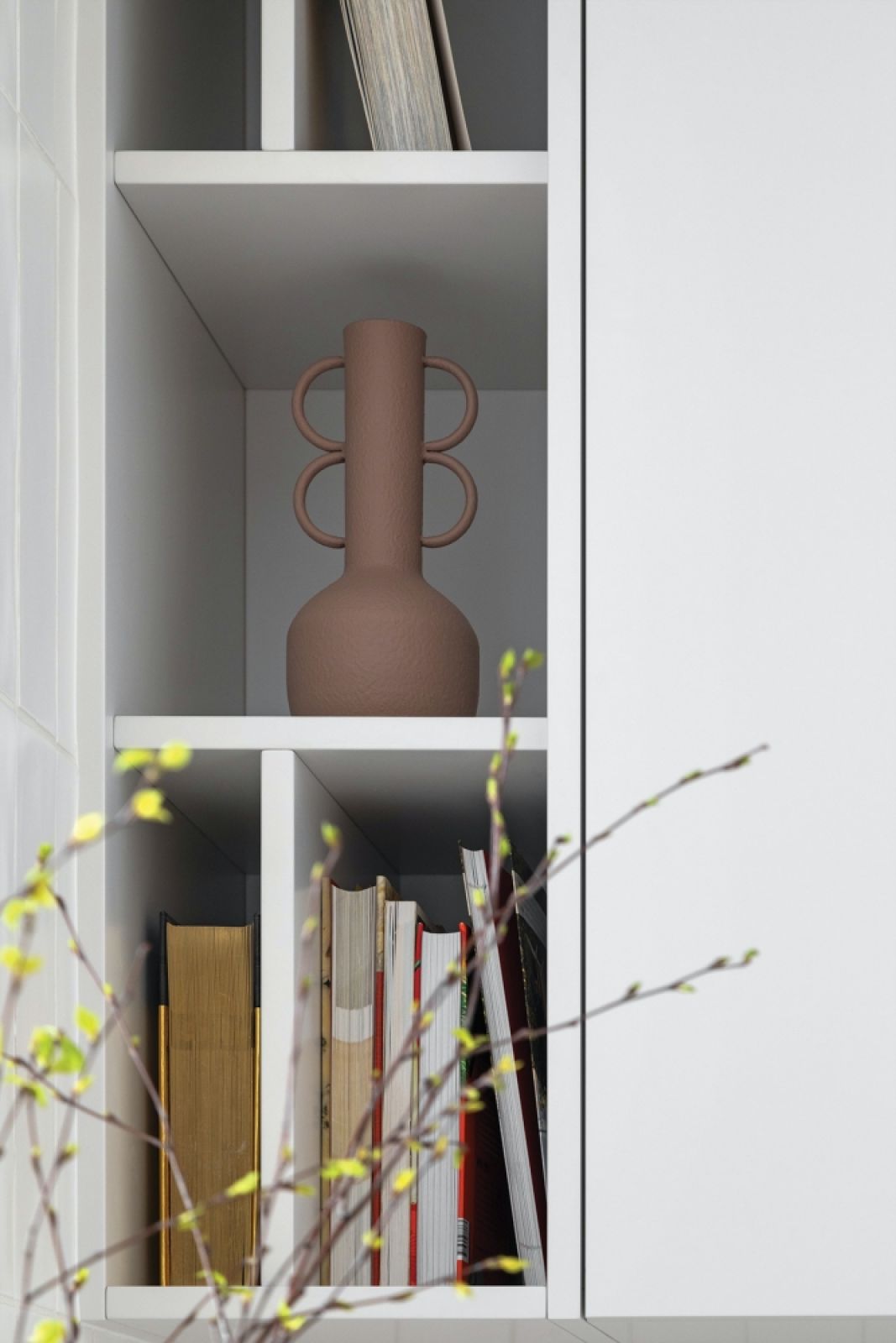 Renata dużo podróżuje, zbiera inspiracje wnętrzarskie i kulinarne, a kultura skandynawska jest jej szczególnie bliska. Ilekroć wyjeżdża w tamte rejony, wraca z albumami o wnętrzach i architekturze. Piotr przygotował projekt, który łączy wymagania estetyczne z praktycznymi. Te ostatnie były bardzo konkretne. Na szczęście mieszkanie zostało kupione w stanie deweloperskim, można więc było przesunąć ściany i zmienić nieco układ pomieszczeń.