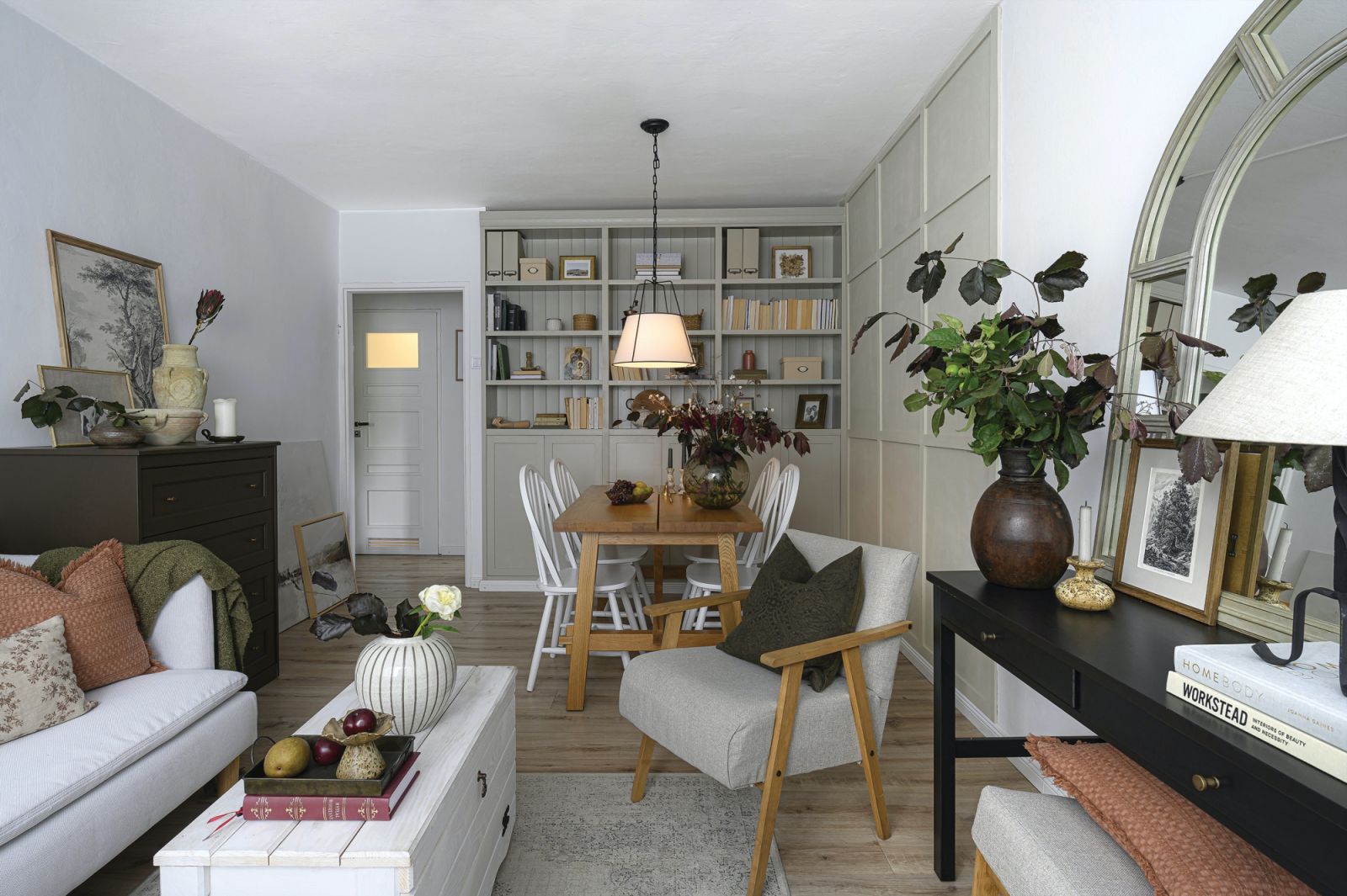 Jak urządzić małe mieszkanie 42 m2 – aranżacja w stylu modern farmhouse z elementami vintage: