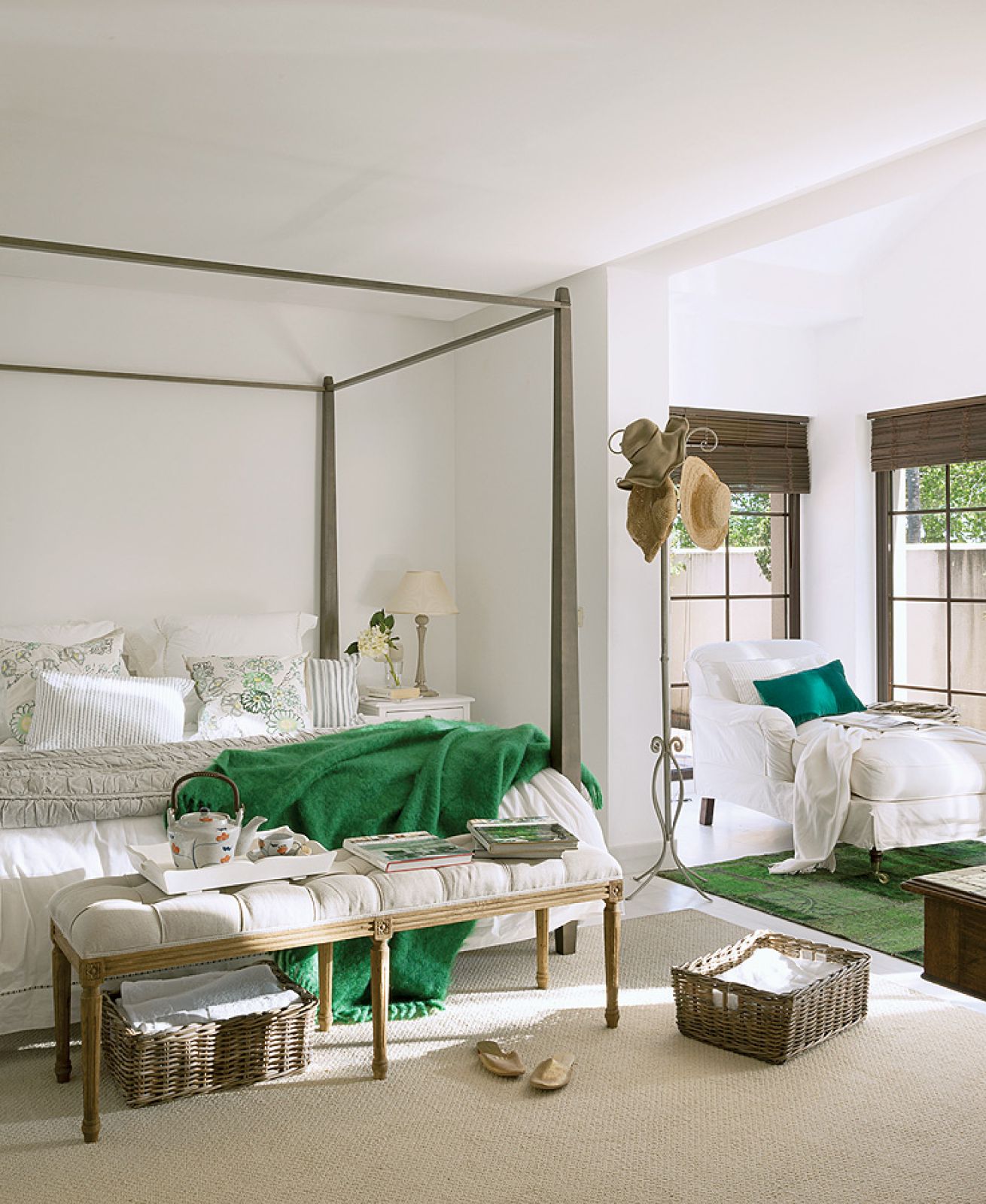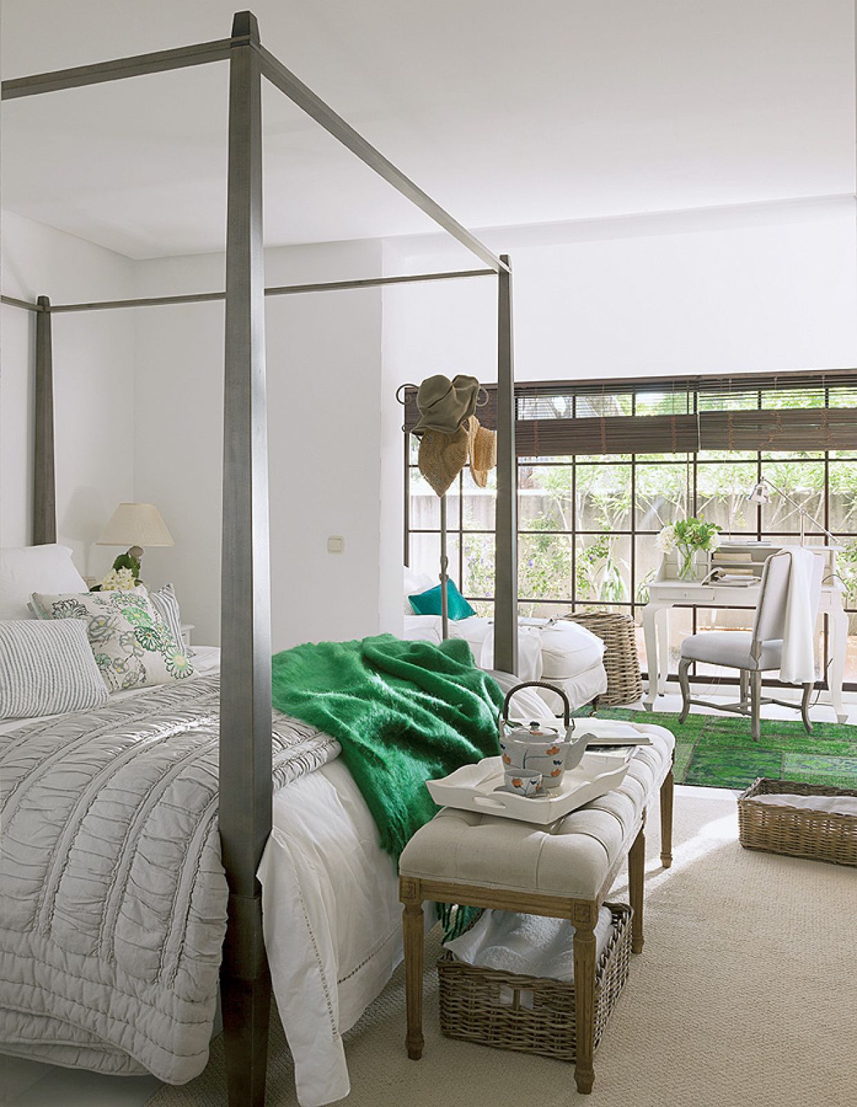 Najwięcej jest bieli (ściany, meble, drzwi, czasem podłogi), potem z umiarem dozowana zieleń (wszelkie dodatki: od dywanów przez pledy po doniczkowe kwiaty), w końcu gdzieniegdzie kolor naturalnego drewna (pledy, wiklina, donice) i sieny (terakotowe podłogi). Do tego dołożyli kolonialne akcenty: bambusowe rolety, łóżko w sypialni z baldachimem i drzwi w salonie. I dużo naturalnych materiałów: kamień, drewno, len, wełnę, trawę morską, wiklinę.