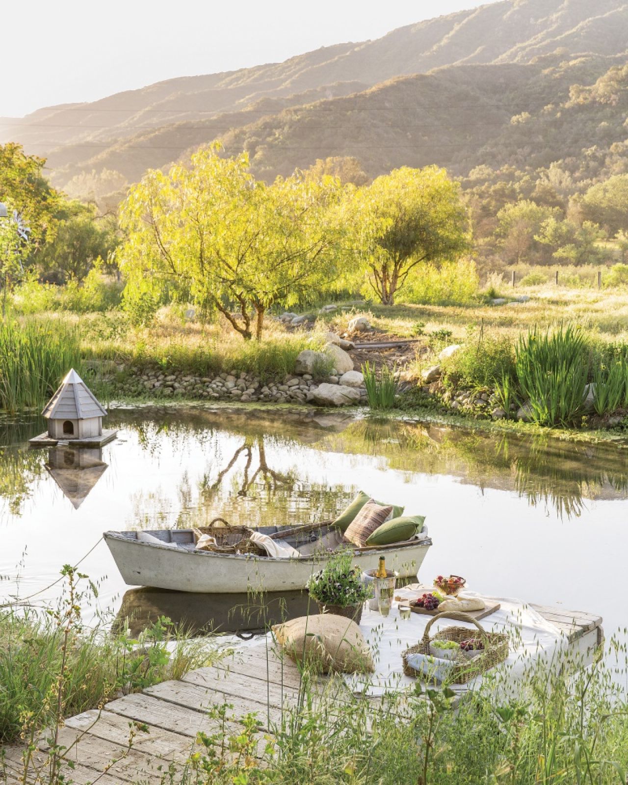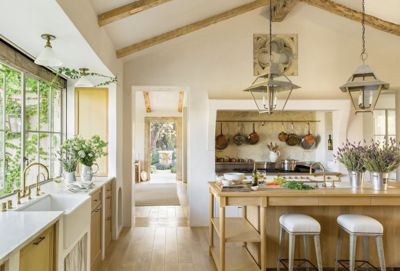 Brooke mówi, że gdy zaczęła myśleć o domu, wyobraziła sobie najpierw dróżkę, która do niego prowadzi. Na końcu był budynek. Wkoło zagroda dla owiec i osłów, kurnik i warzywnik. Marzenie wymagało więc przestrzeni. Kupili duży kawałek ziemi półtorej godziny jazdy od Los Angeles i Steve zaczął rysować plany. Kształt miał odzwierciedlać tutejszą wiejską architekturę, a jednocześnie czerpać z francuskich wzorców. Powstał czterystumetrowy dom kryty dachówką. Do budowy gospodarze użyli nowoczesnych materiałów, ale też drewnianych belek pochodzących ze starych, rozebranych budynków. Wszystko po to, by nadać mu ten spatynowany wygląd i odpowiednią atmosferę. Wnętrze miało być jasne, wstawili więc duże dzielone okna, stylizowane na stare. W miejscowych domach montowano zazwyczaj małe, z okiennicami, wszystko po to, by chronić się przed upałem.