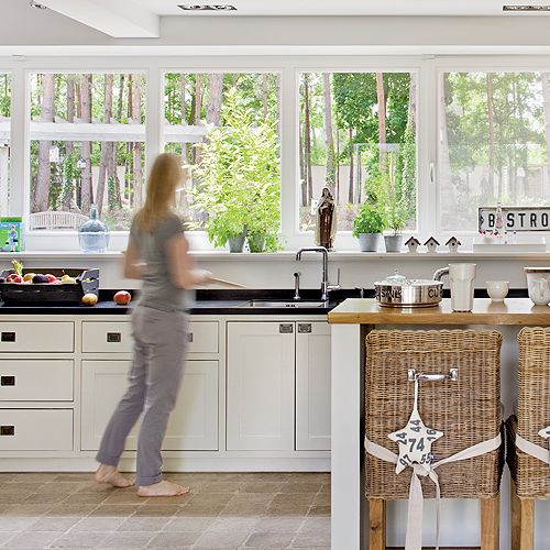 Co jeszcze podpatrzyli w innych krajach? Jasne kolory, lniane i bawełniane tkaniny, kamień na posadzkach (belgijski), naturalne drewno (olejowany dąb), biało-kobaltową holenderską terakotę. Zwykle podział w domach jest oczywisty: parter do spotkań i imprezowania, góra prywatna. Ale nie u Ani i Harry’ego. Tu piętro należy do czwórki dzieci, a na parterze niemal w każdym miejscu widać ich obecność. Świetnym przykładem jest ściana w kuchni pomalowana tablicową farbą. Dziewczynki na niej bazgrzą, a Ania planuje tydzień. – Ciągle mi się myli, kto ma jakie zajęcia po szkole – śmieje się. Trzeba to wszystko rozrysować, bo inaczej grozi nam kompletny chaos.