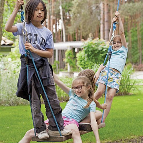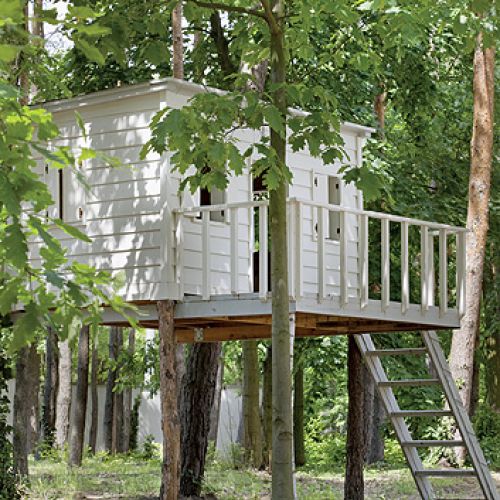Dom jest otwarty nie tylko na zieleń, ale i na ludzi – dzieci mają mnóstwo przyjaciół, wpadają się pobawić, zanocować. W ogóle miejsce, które szykowali sobie na emeryturę, okazało się wymarzone dla młodszego pokolenia. – Chcieliśmy, żeby 6-letnie bliźniaczki oraz starsza córka i syn chowali się blisko natury. Tu, raptem 20 kilometrów od Pałacu Kultury, mają wszystko, co trzeba. Zamiast przed komputerem siedzą w domku na drzewie albo jeżdżą na deskach po tarasach. Sąsiad weterynarz ma konie. Zimą na skarpie całe towarzystwo szusuje na snowboardach i sankach.
