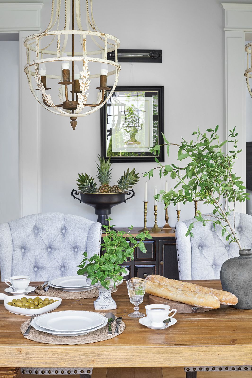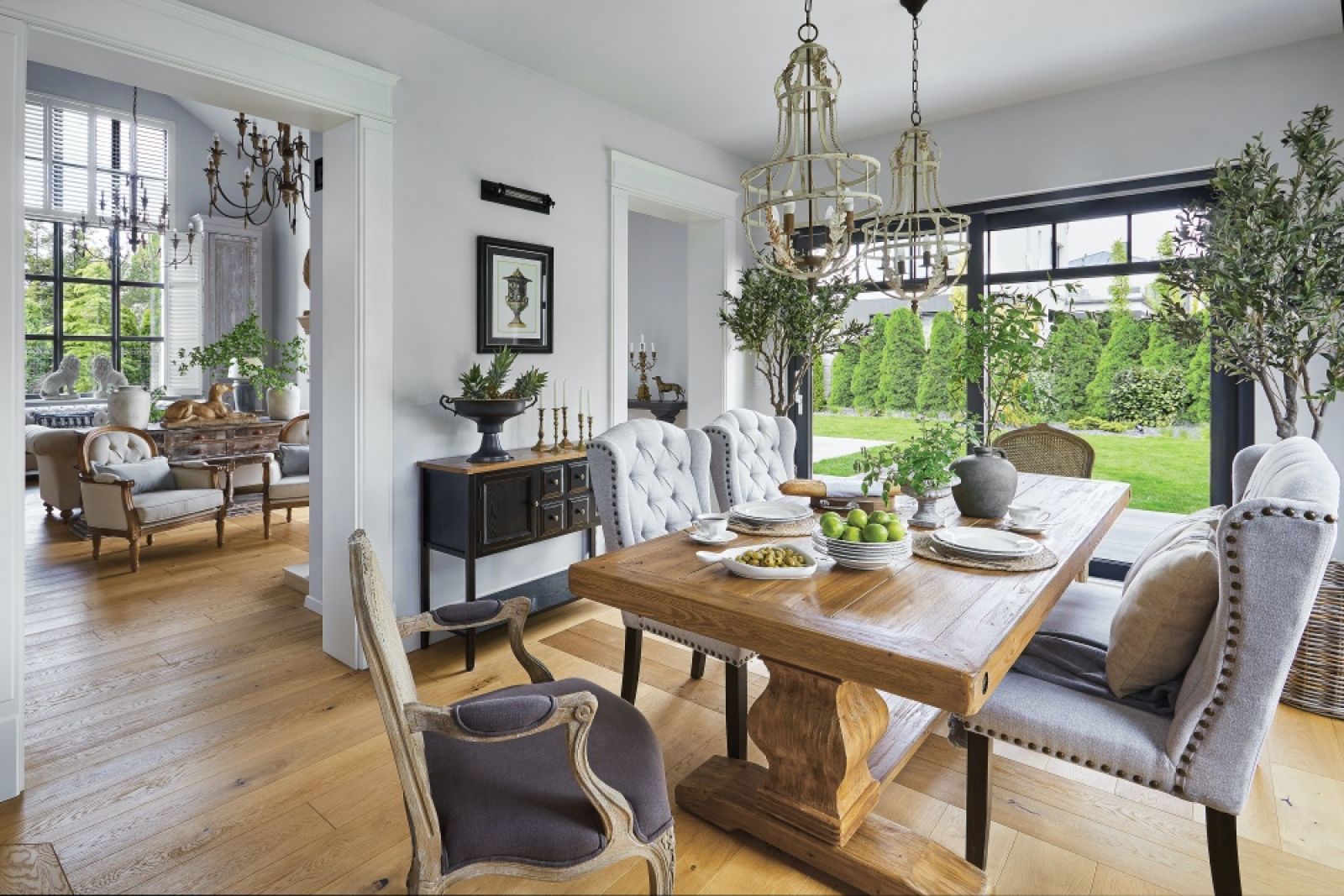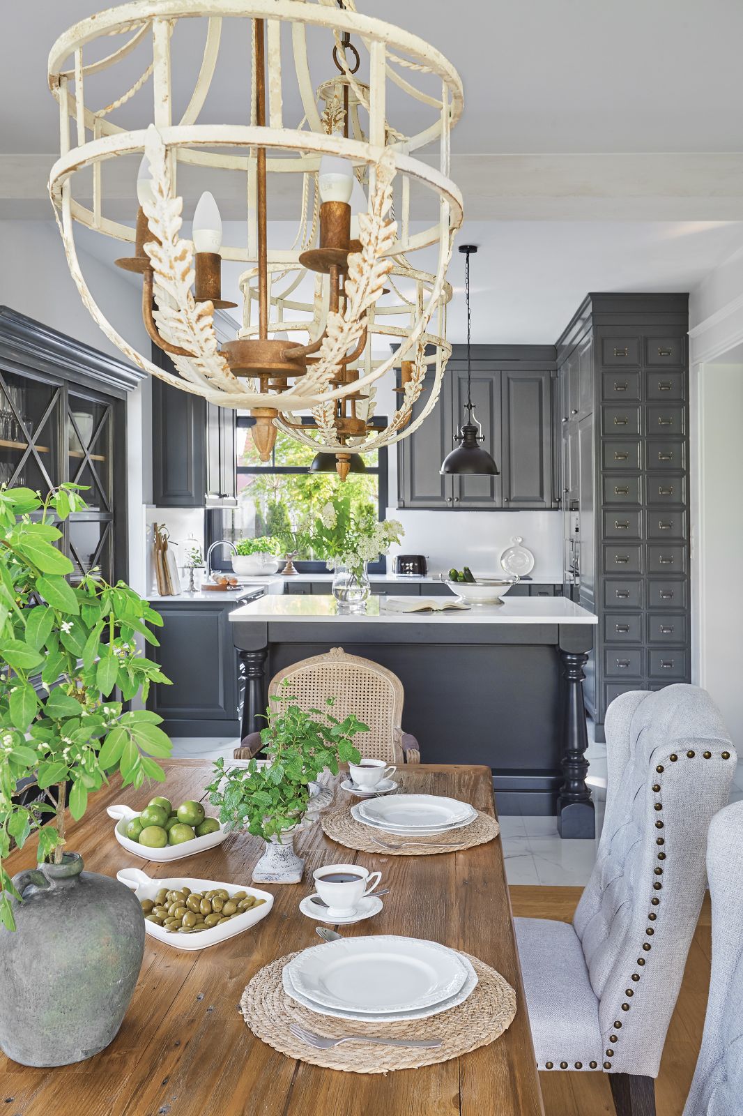 Oboje porozumieli się szybko – w eleganckim, klasycznym domu powstała na dole otwarta kuchnia z wyspą, połączona z przytulną jadalnią i przestronnym salonem. Tak duża przestrzeń sprzyja wspólnemu spędzaniu czasu. Goście, siedząc przy ogromnym stole w jadalni (to właśnie pierwszy zakup właściciela), mogą przyglądać się, jak gospodarz z partnerką przygotowują dania według przepisów przywiezionych z podróży, bo oboje bardzo lubią gotować.