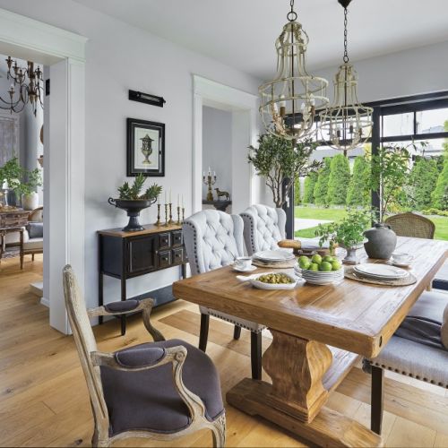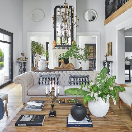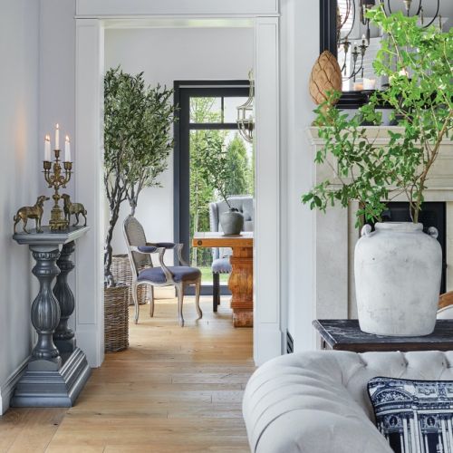 RezydencjeW tym eleganckim, klasycznym domu wysmakowane, ale bardzo przytulne wnętrza są tłem dla niebanalnych mebli i tradycyjnego rzemiosła, antyków gustownie połączonych ze współczesnymi stylizowanymi meblami. Taka aranżacja oprze się każdej modzie.