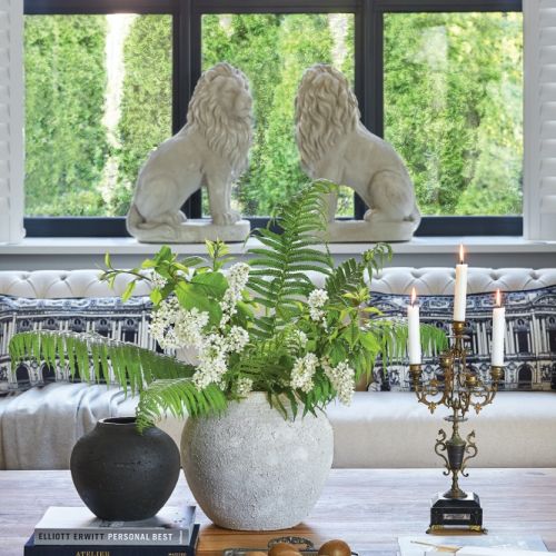 Budowa i urządzanie domu trwały dwa lata, wszystko poszło gładko, z jednym wyjątkiem. Ekipa budowlana zaliczyla wpadkę – przewierciła siedmiometrową ścianę w salonie z ukrytymi rynnami. Jej osuszanie przedłużyło prace o rok. Ale i tak warto było czekać. Powstały wysmakowane i przytulne wnętrza, które są tłem dla niebanalnych mebli oraz tradycyjnego rzemiosła, antyków gustownie połączonych ze współczesnymi stylizowanymi meblami – taki dom oprze się każdej modzie.
