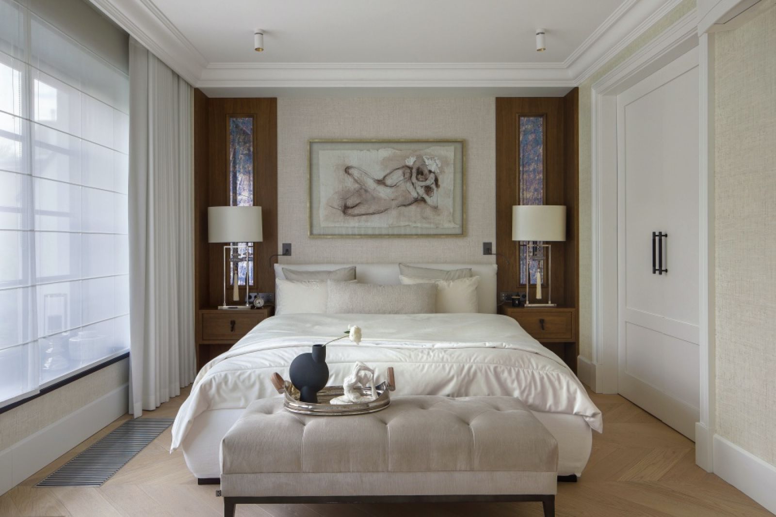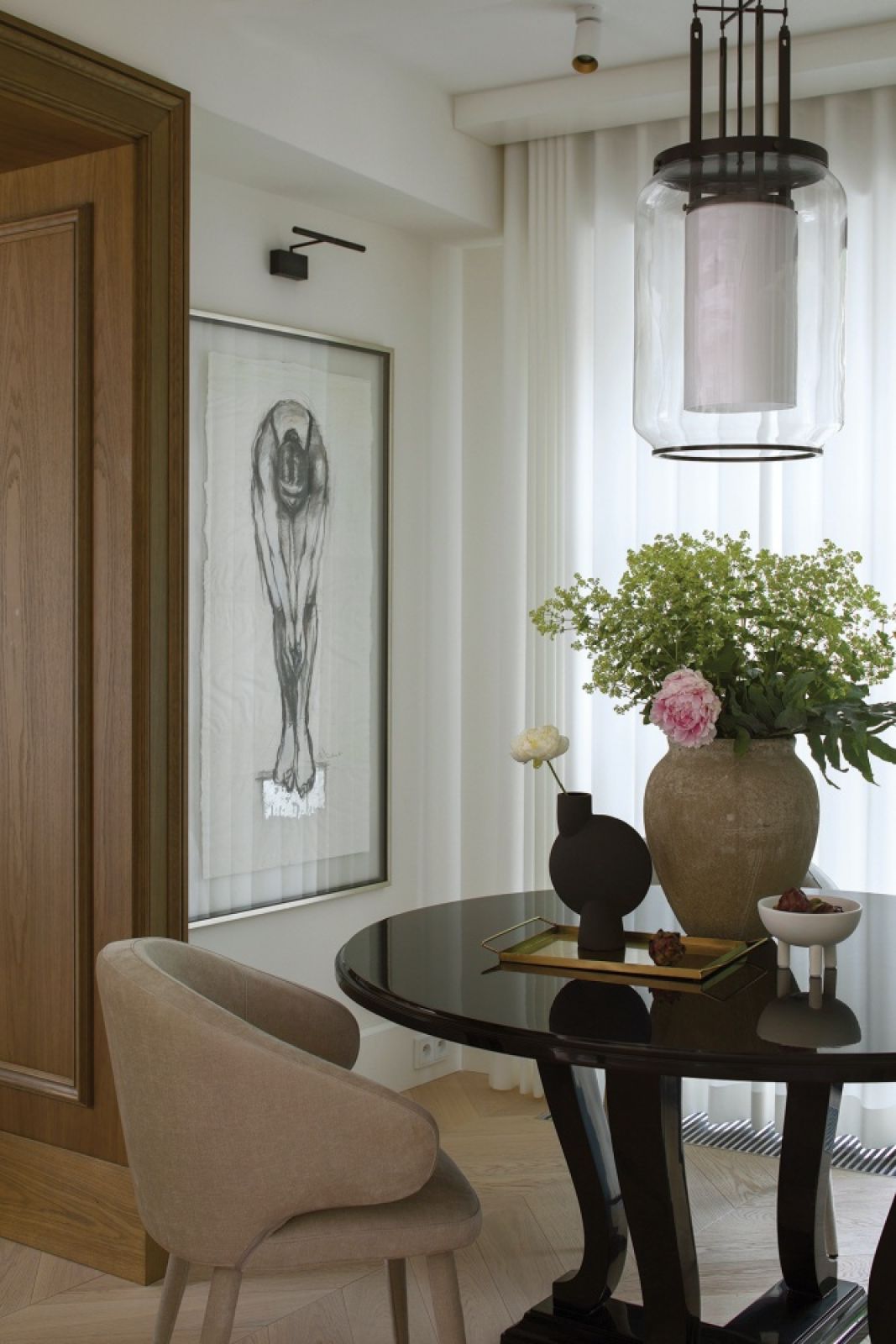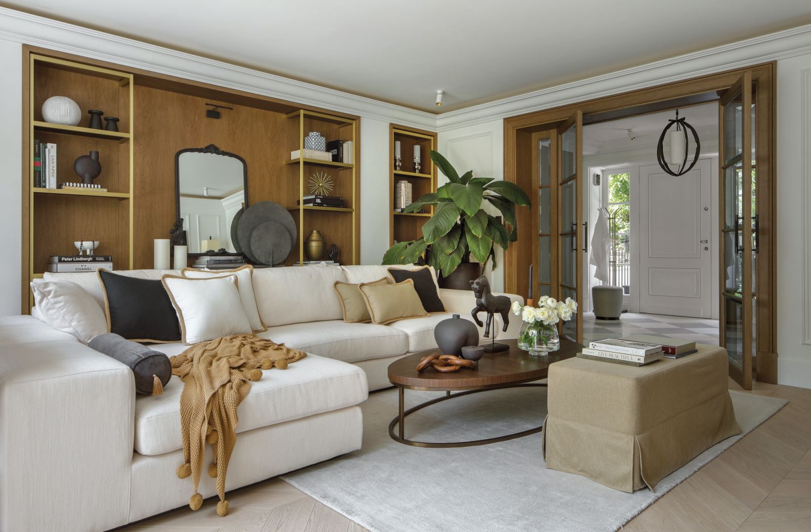 Wnętrza urządzone piękną stolarką i luksusowymi lampami