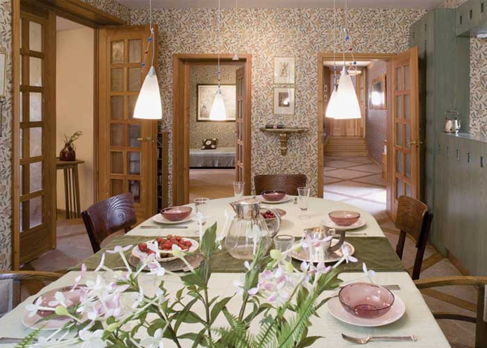 Szczęśliwie, tuż po kupnie nieruchomości, spędził wakacje w Szwajcarii. W wiejskiej rezydencji przyjaciół zorientował się, jak funkcjonuje dom pod miastem, jak ważne są łazienki – choćby najskromniejsze – gdy przyjmuje się gości. Podpatrywał, co sprzyja integracji mieszkańców, a jakie rozwiązania tworzą intymność. Dało mu to wszystko mocno do myślenia. Od początku był pewien, że dom ma wyglądać, jakby stał tu od zawsze. Do starych drzew jakoś nie pasowałaby nowoczesna bryła. Choć frontowa elewacja jest monumentalna, znacznie bardziej kłują w oczy „wiejskie” budynki sąsiadów.