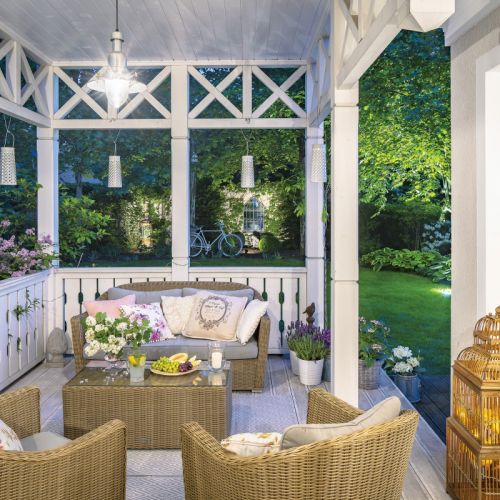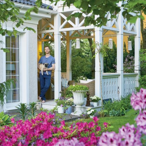Dom modułowy miał tę zaletę, że mogli szybko się wprowadzić, a na tym im zależało. Ale od początku wiedzieli, że go przebudują. I że zrobią to sami, bez pomocy architekta, bo oboje – choć ona jest psychoterapeutką, a on dentystą – uwielbiają urządzać wnętrza. Po pierwsze, poprosili producenta o podniesienie sufitów z 2,50 m na 2,70 m. Wstawili okna ze szprosami, a w kuchni zrobili wykusz w amerykańskim stylu. Obok salonu dobudowali ogród zimowy, zaś drzwi frontowe wymienili na drewniane ze stylową pajęczynką na górze – całkiem jak z ukochanego Sopotu. W tym stylu jest też drewniana weranda – także według ich pomysłu. Wyszła bardzo elegancko, a największe wrażenie robi wieczorami, gdy w domu palą się światła. – Przypomina nie tylko nadmorski kurort, ale i stylowe rezydencje z południa Stanów Zjednoczonych – cieszy się Magdalena.