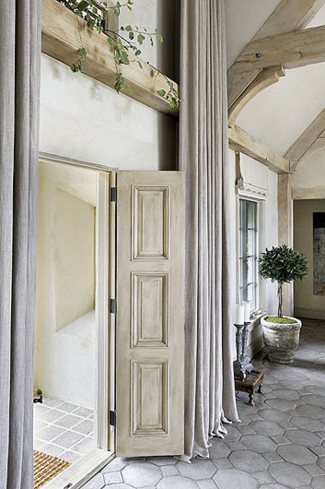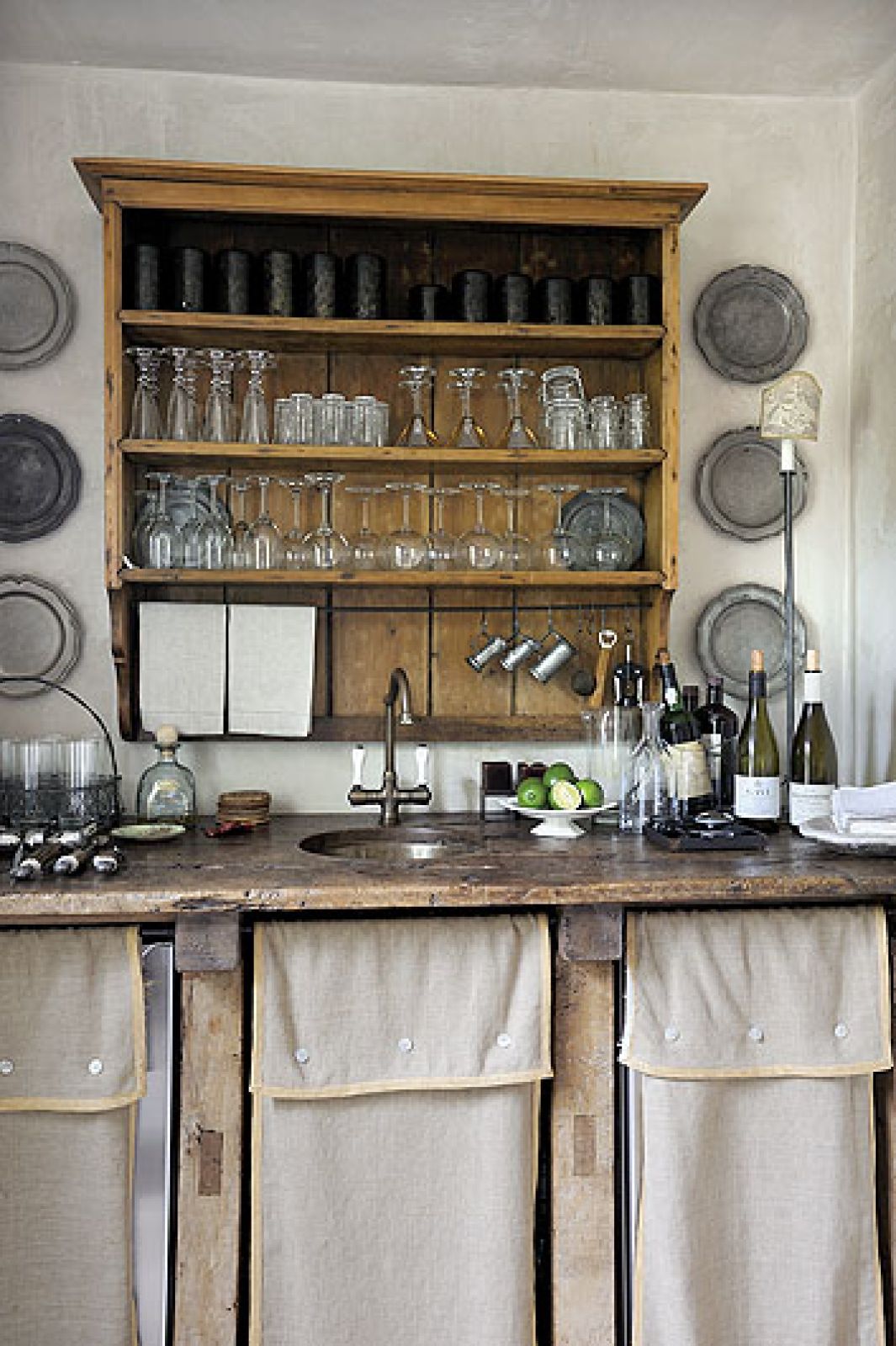 Do tego wszystkiego obecne w całym domu olbrzymie kotary – czasem w drzwiach, czasem na ścianach. W kuchni też typowo południowy myk: zamiast drewnianych drzwiczek w szafkach lniane zasłonki.