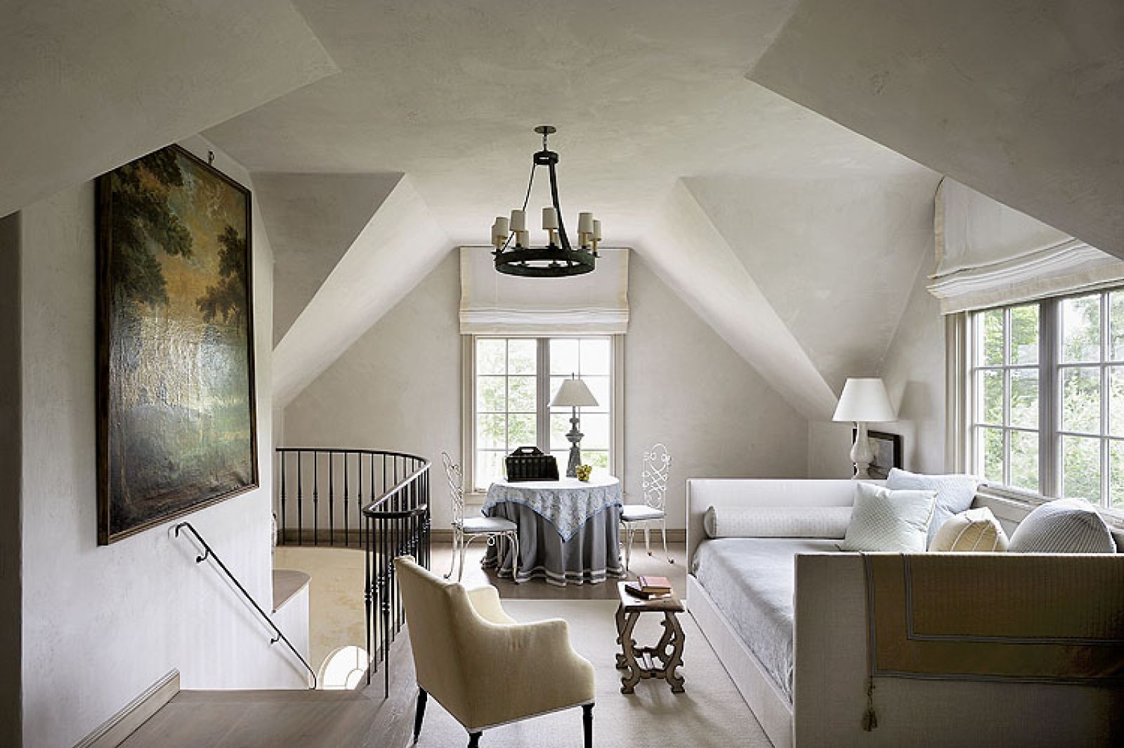 Podniósł więc dach, dobudował przedsionek z kamienną podłogą, wyostrzył łukowate sklepienia i podkreślił je bielonymi cedrowymi belkami. Potem zaczęło się urządzanie wnętrz w europejskim stylu.