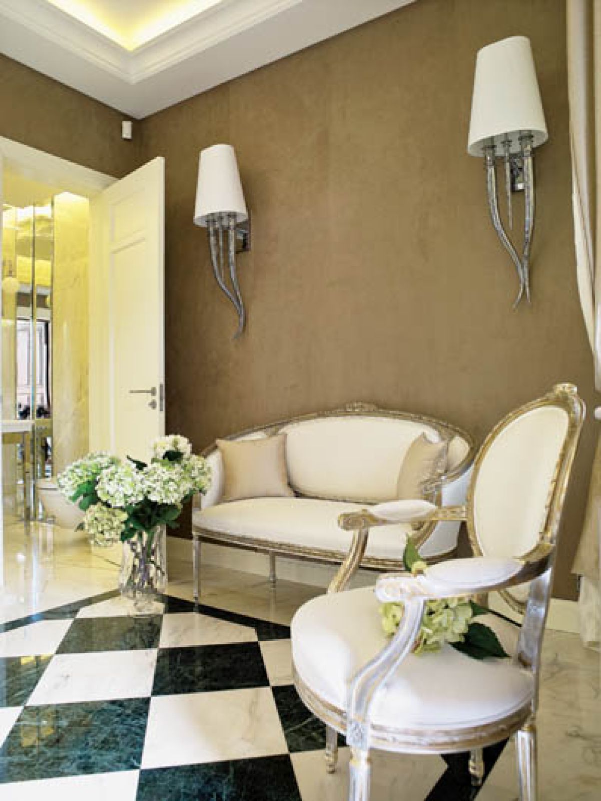 Praca ruszyła z kopyta. Wykonawcy czasem kończyli robotę o pierwszej w nocy, żeby zacząć znów o piątej rano. To był straszliwy maraton, po prostu bieg bez wytchnienia. Stolarze, którzy robili artdécowskie meble według projektu Antoniny, poświęcili nawet wolne weekendy, żeby dotrzymać wyjątkowo krótkich terminów. Lampy, kinkiety i inne dodatki ustawiliśmy dosłownie w przeddzień wesela. O mały włos, a goście nie mieliby gdzie usiąść w salonie. I kanapy, i stolik kawowy pojawiły się w ostatniej chwili.