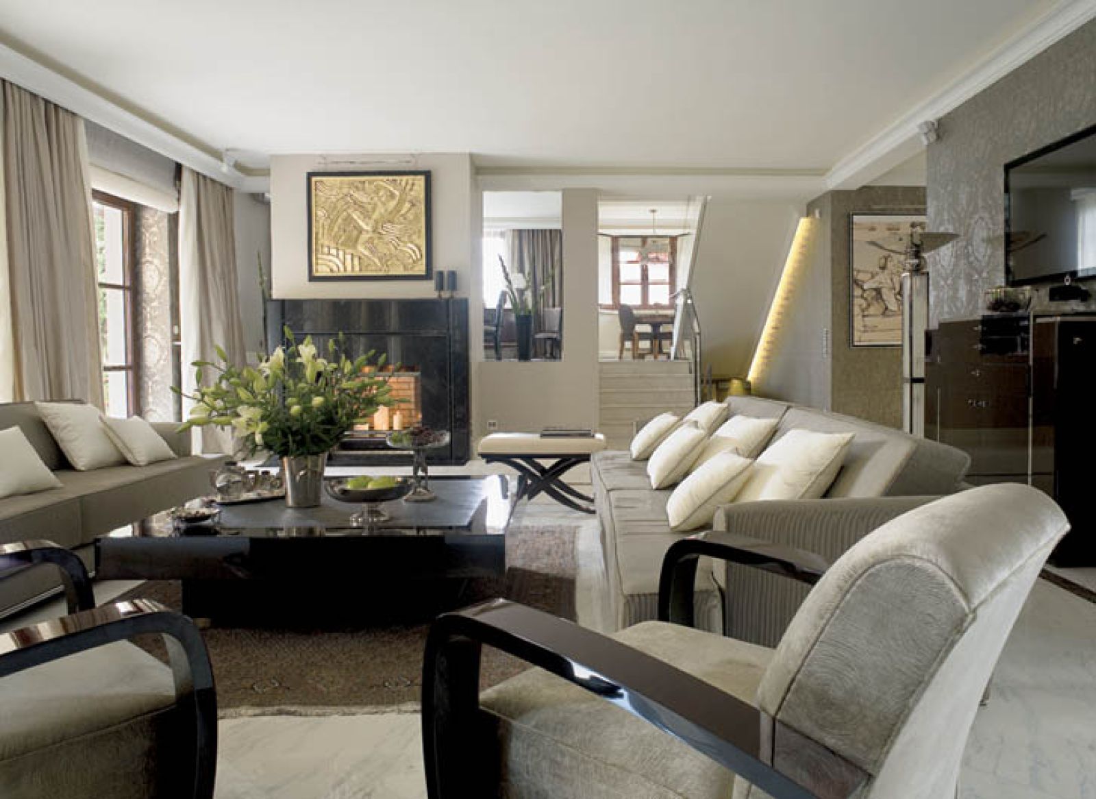 Bóg raczy wiedzieć, co mnie podkusiło, żebym zajrzała do Decoterii – galerii z ciekawymi rzeczami na Powsińskiej w Warszawie. Tutaj pani Antonina Bilik ma swoje królestwo w stylu art déco. Wszystko mi się podobało, jednak na nic nie mogłam się zdecydować. W końcu zamówiłam dwie przeszklone gabloty i stół. Nie byłam tylko pewna, czy będą pasowały. Namówiłam właścicielkę galerii, żeby do mnie przyjechała i oceniła. I wtedy stało się to, czego się spodziewałam – gdy tylko przekroczyła próg domu, powiedziała „Nie!”, a propozycje zmian przedstawiła w bagatela... trzydziestu trzech punktach.