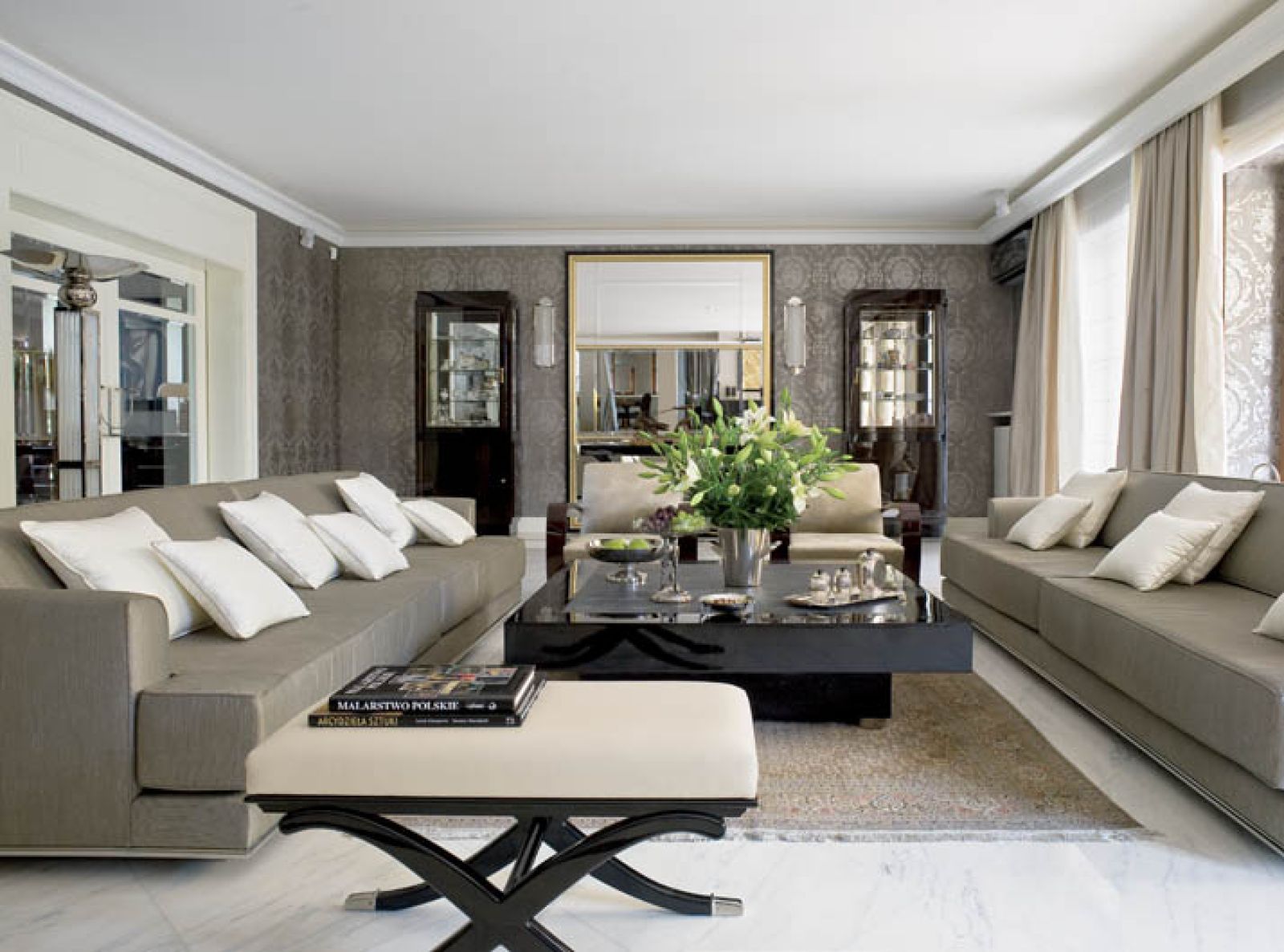 To, co znajdowałam, godzinami przeglądając zagraniczne katalogi, nie do końca mi się podobało. W końcu piękne szare sofy, z lekko skośnymi oparciami i podkute metalem, jak każe styl art déco, zrobiłyśmy u Strzelczyka według projektu Anny. Zaufałyśmy polskim rzemieślnikom. Uważam, że szukanie mebli po włoskich sklepach to strata czasu i pieniędzy.