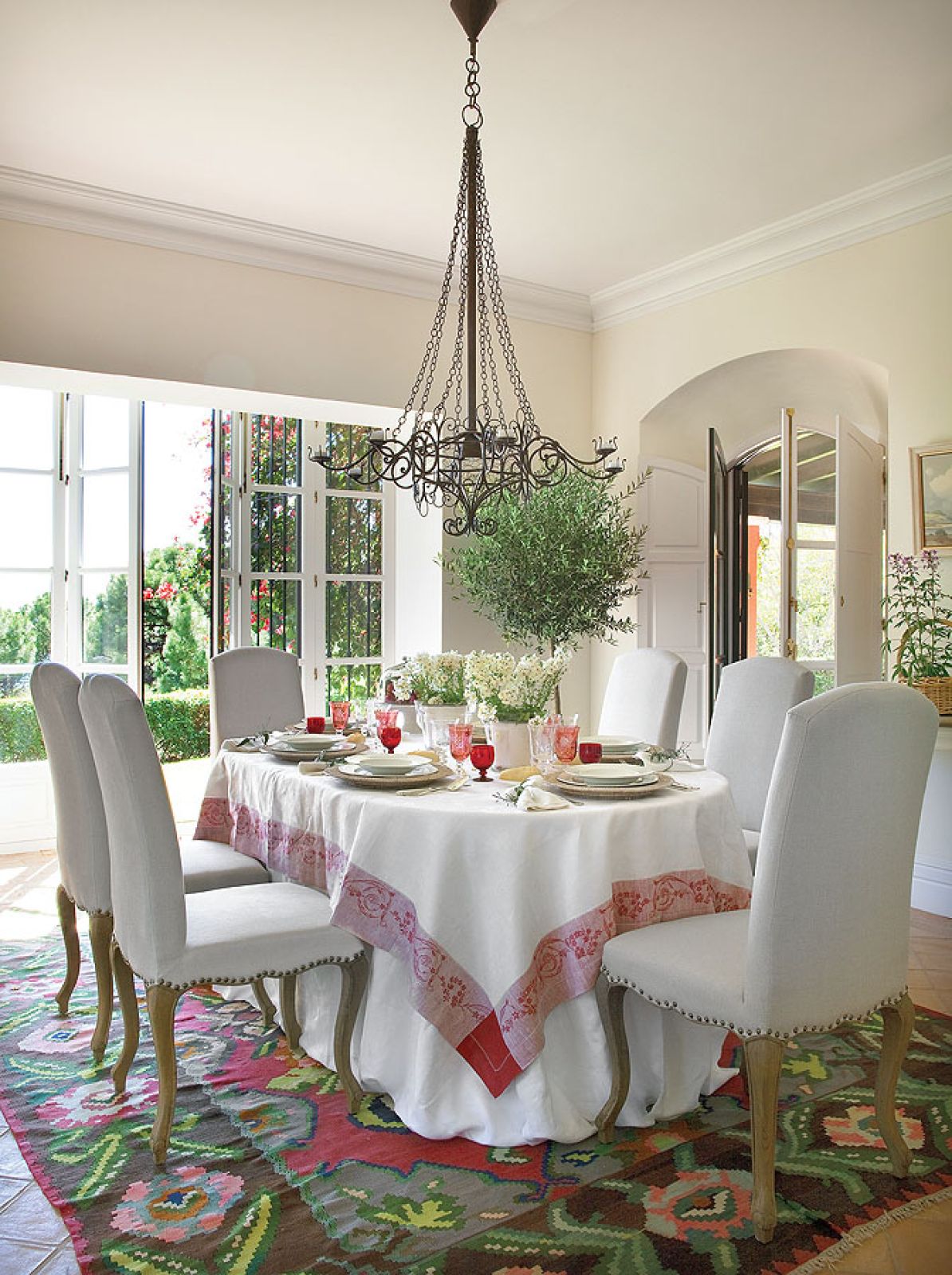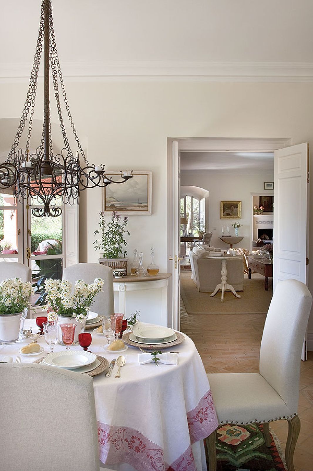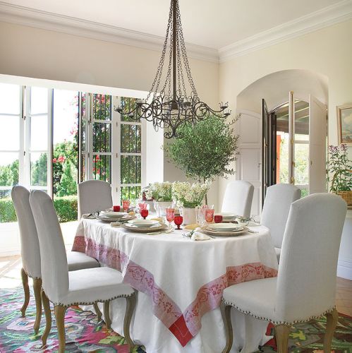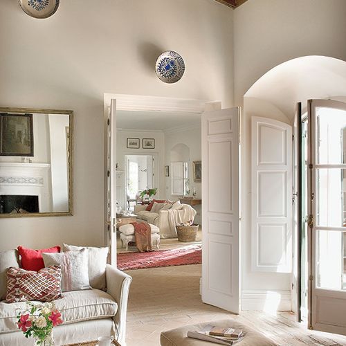 Pomysł na aranżację podpatrzyli w wiejskich andaluzyjskich rezydencjach. Stąd podłoga ulepiona z gliny, grube ściany, jasne pokoje, fotele obite surowym lnem, terakotowe płytki, kosze i dywany wyplatane z rafii.