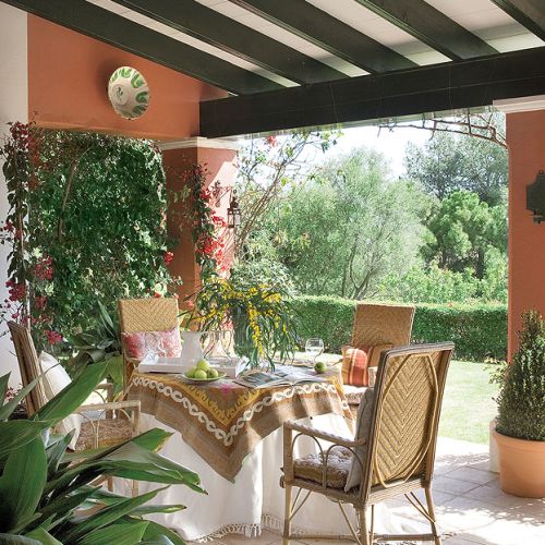 Na olbrzymim tarasie można żyć niemal przez cały rok. Rustykalny klimat pomógł mu nadać architekt Eduardo Dorissa, znany na Costa del Sol ekspert i twórca luksusowych letnich rezydencji. Fascynują go lokalne rękodzieło i mało popularne dziś techniki budowania, dzięki którym nowiutkie domy wyglądają, jakby powstały przed wiekami. Jego pomysły, podpatrzone w andaluzyjskich wiejskich rezydencjach, tak bardzo spodobały się Julii i Ernestowi, że zgodzili się, by podłoga ich hacjendy została... ręcznie ulepiona z gliny. Pokolenia wieśniaków sprawdziły na własnej skórze, że takie posadzki i grube ściany w chłodne dni zatrzymują ciepło, a w upały dają przyjemny chłód.