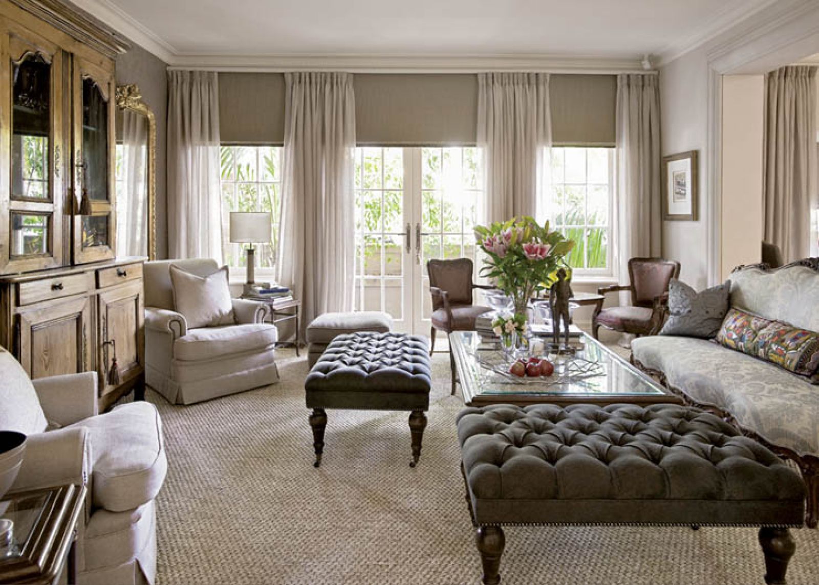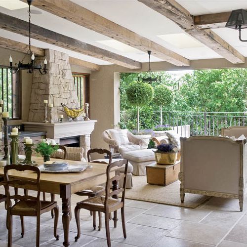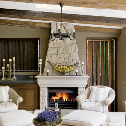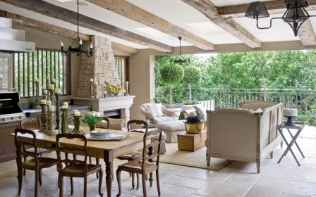 Weranda sąsiaduje z salonem i kuchnią. Przez większą część roku szklane drzwi są otwarte, więc te trzy pomieszczenia tworzą jedną całość. Stojące wewnątrz meble zdradzają miłość Marylou do francuskiego stylu. – Zbieram je już siedemnaście lat – przyznaje. Ale ponieważ pochodzi z Afryki Południowej, nie mogło zabraknąć też akcentów z Czarnego Lądu – na przykład drewnianych rzeźb, symboli płodności.